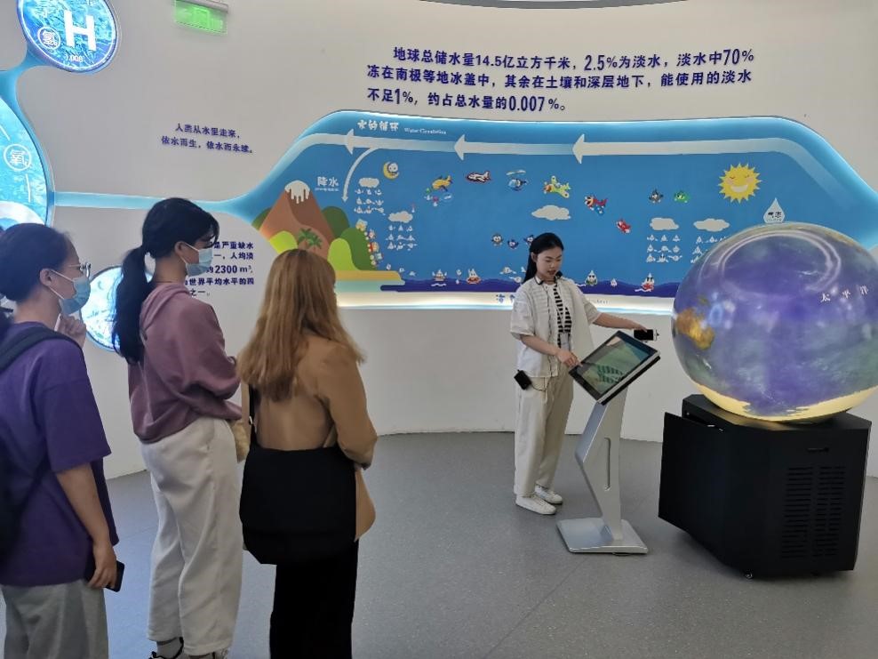 首先黄老师为同学们讲解了天府新区第一下沉式再生水厂的组成、建成以及目前主要的工作任务。然后带领同学们参观了天府新区水环境科普馆,在讲解过程中,黄老师告诉同学们目前水厂主要承担生活污水处理,使其变废为宝,循环利用的重要工作,向大家讲述自古以来“因水而兴,因水而荣,因水而困,因水而为”的发展理念,让同学们深刻认识到“水”对天府新区公园城市建设的重要意义,倡导大家节约水资源。