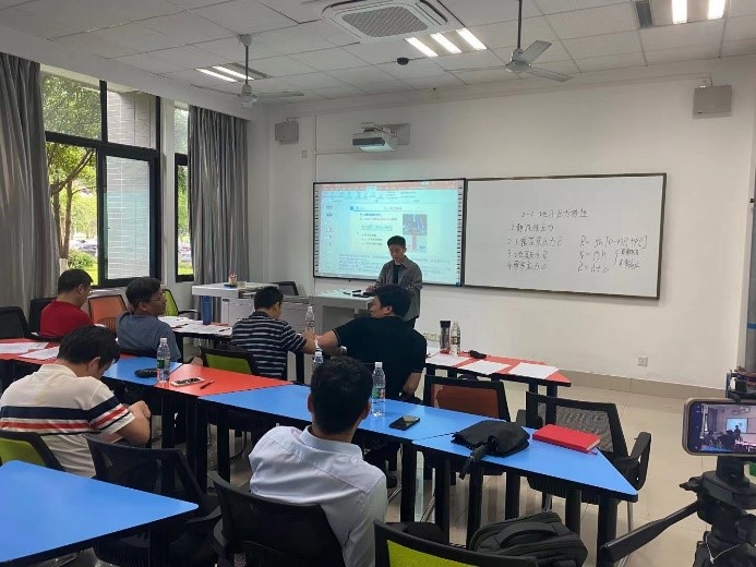 王虎老师主讲《构造地质学》,他重点讲解了节理方面的知识点,评委老师评价该讲课过程较为自信,还可以借鉴国内外精品课程和相关教材进一步精美化课件、优化板书细节等,最后程谦恭教授示范了构造知识点的讲解细节。