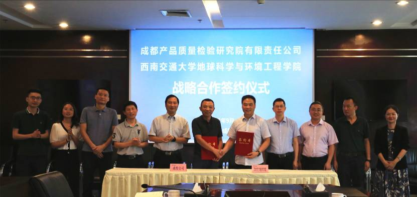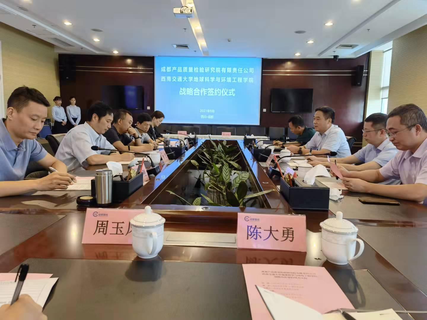 和双方沟通协商的基础上,9月28日,西南交通大学地球科学与环境工程学院关秦川书记带队一行4人赴成都产品质量检验研究院有限责任公司签订战略合作协议。