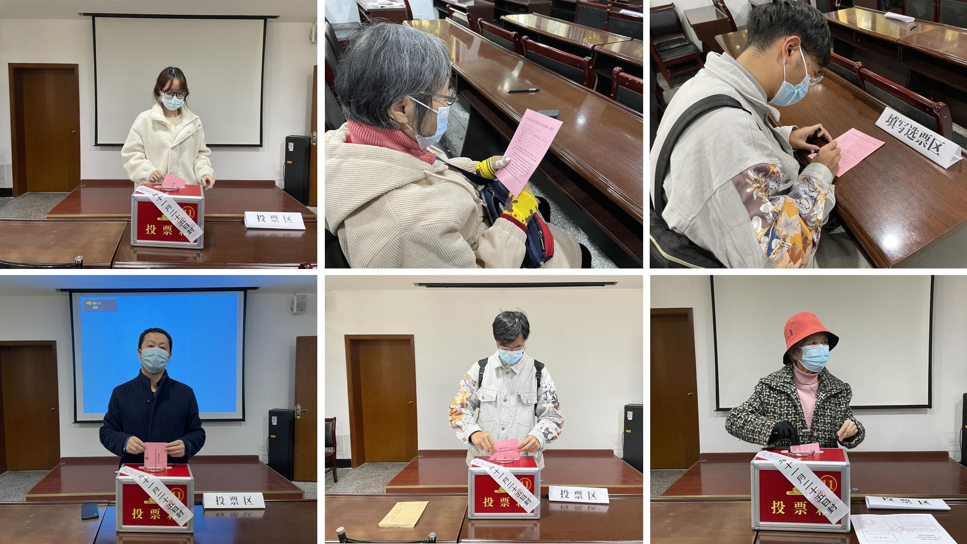 根据学校相关要求,在投票站严格落实疫情防控各项要求,严格执行“一米线”间隔、戴口罩、扫码、亮码等防疫措施,投票现场有序设立正式代表候选人简介公示区、换取选票区、填写选票区、投票区,整个投票站氛围庄重严肃,秩序井然有序。选民仔细阅读代表候选人简介,认真填写选票,行使法律赋予的民主权利,工作人员及研究生会的志愿者认真为选民换取选票并讲解投票注意事项。