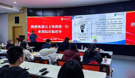 随后,赵锐教授代表项目组分别就“大数据挖掘驱动的危废消纳路径研究”以及“碳中和背景下的碳标签实践分析”向吴玉锋教授汇报了项目及团队的最新研究进展。吴玉锋教授对团队工作表示了充分肯定,并对推动项目有序开展提出了中肯的意见和建议。