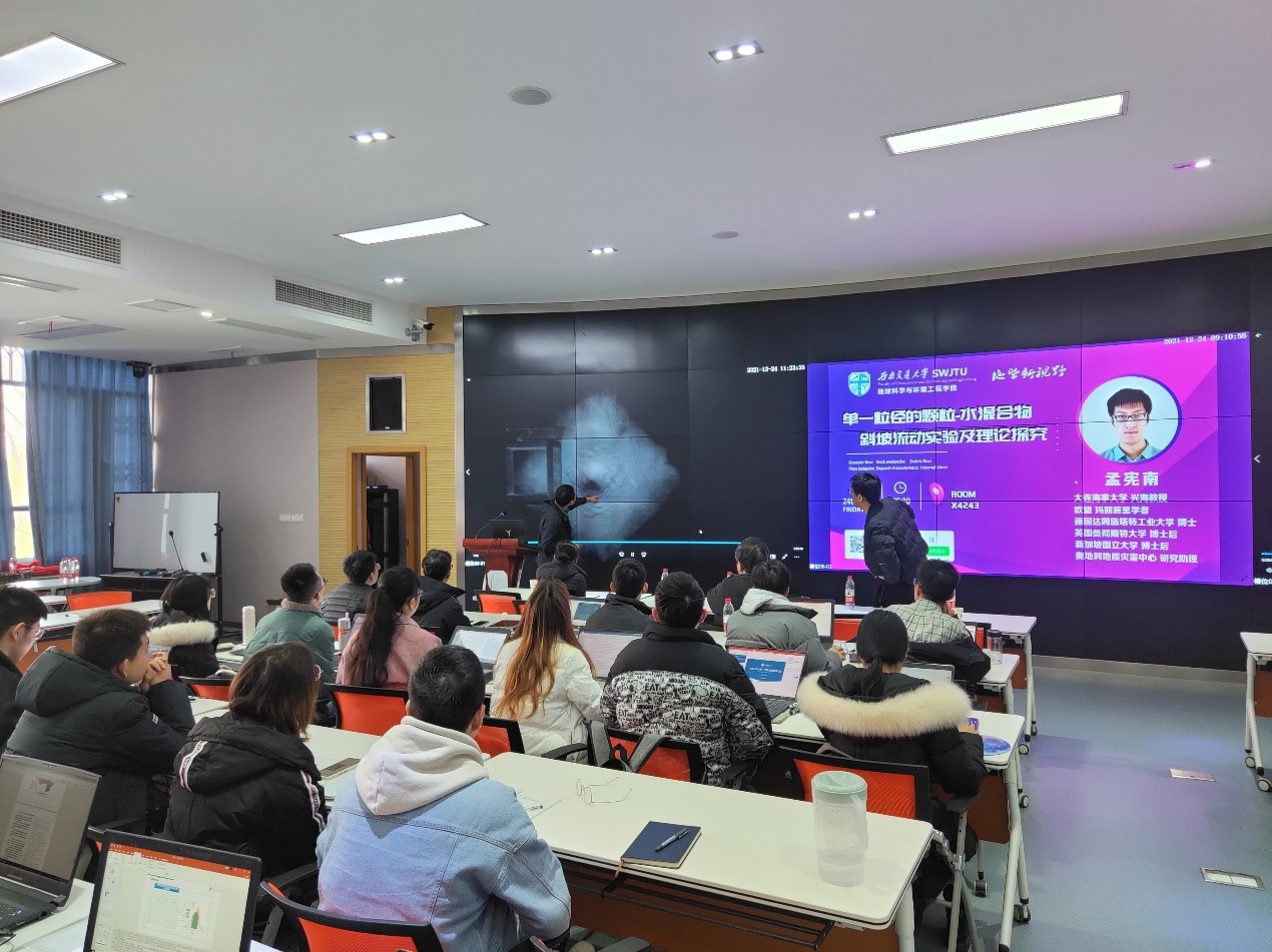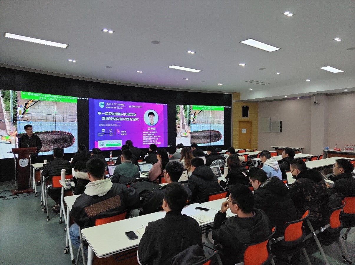 X4243会议室开展了题为《单一粒径的颗粒-水混合物斜坡流动实验及理论研究》的学术报告。现场气氛热烈,学术氛围浓厚。