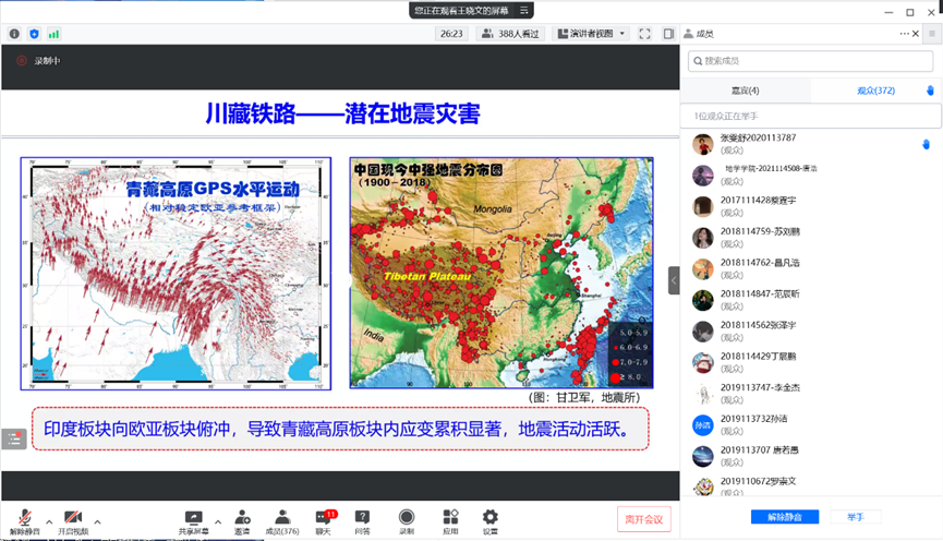 紧接着在第三、第四部分中,王晓文又以金沙江沿岸以及藏东南冰川两处作为实际案例,依托工程实际情况向学生展示了InSAR技术的实际工作流程以及得到的成果,充分展示了我国科研学者在面对难题时积极探索解决方法,持续开拓创新的能力。