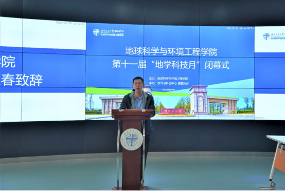 张玉春为本次闭幕式致辞。张玉春首先代表学院对本次“地学科技月”活动的顺利举办及取得的丰硕成果表示祝贺,并向关心支持科技月活动的领导和在本次活动中付出辛勤汗水的同学们表示感谢,希望同学们能在此次活动中有所收获,有所提升,为将来用科技改变生活打下基础,也希望同学们带着梦想出发,用科技改变命运,为社会创造价值。
