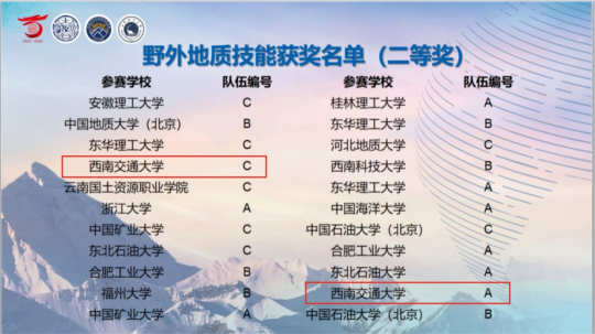 自2021年8月正式组建了由地球科学与环境工程学院副院长赵晓彦教授领队,王世明、梁毅、裴秋明、覃礼貌等老师担任指导教师,6位资勘专业、3位地质工程专业本科生组成的三支参赛队伍,先后由8位专业课老师对参赛队员进行了多方面系统的培训,培训期间还组织队员赴理县、汶川等地进行了野外实测剖面练习,强化野外工作技能。参赛队员们也全力以赴,精心准备,以最饱满的状态迎接比赛。由王枥伟、彭俊岚、叶志虎三位同学组成的A队,张玉龙、邓承东、张雨晴三位同学组成的C队获得了“野外地质技能竞赛”二等奖。