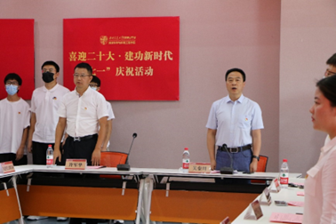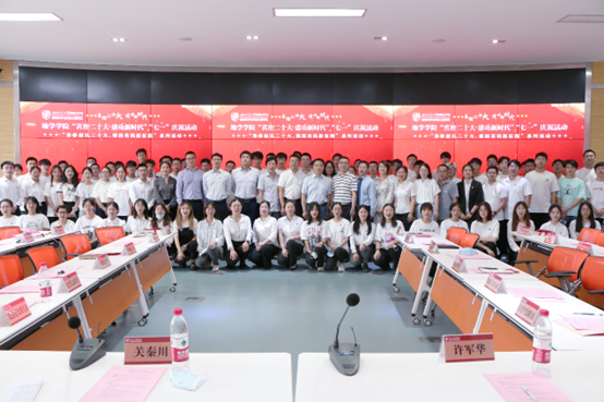 于X4243、X4520会议室举行“喜迎二十大·建功新时代” “七一”庆祝活动。学院党委书记关秦川、党委副书记、副院长许军华出席活动, 2021-2022学年“两优一先”表彰的党员代表以及2021年下半年发展的全体学生党员参加了此次活动。活动由学院党委副书记傅尤刚主持。