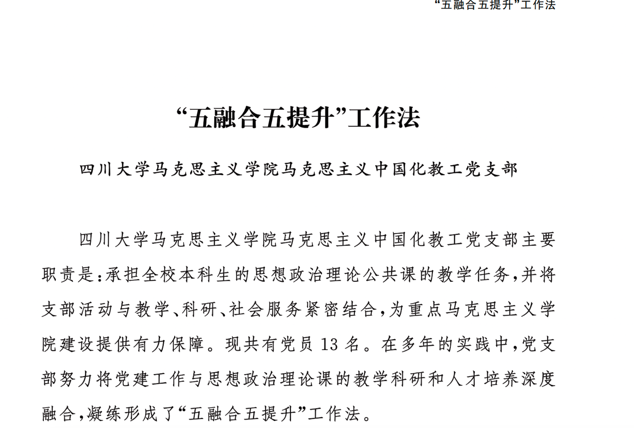 本次会议着重学习了四川大学马克思主义学院马克思主义中国化教工党支部“‘五融合五提升’工作法”,电子科技大学格拉斯哥学院教工党支部“‘联学 联建 联动’工作法”和西南交通大学牵引动力国家重点实验室列车与线路研究所党支部“‘三抓三筑三提升’工作法”,了解了其基本内涵、主要做法、工作启示、案例介绍。