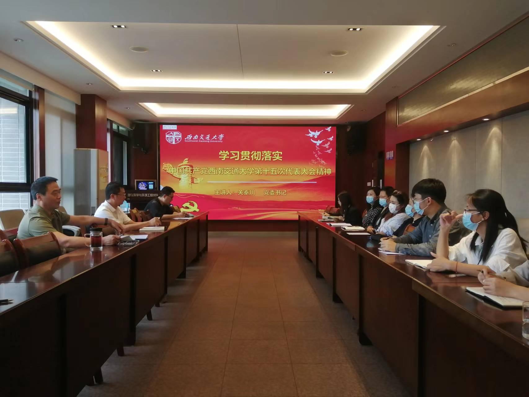首先,关秦川同志领学了中国共产党西南交通大学第十五次代表大会讲话精神。时隔七年,学校第十五次党代会胜利召开,大会的主题是:高举习近平新时代中国特色社会主义思想伟大旗帜,深入贯彻落实习近平总书记关于教育的重要论述,全面总结成绩与不足,把握学校面临的主要矛盾,明确学校新时代的办学思路、发展目标、基本准则、实现途径,统一思想,凝聚共识,振奋精神,不断谱写中华民族伟大复兴的西南交大新篇章。王顺洪书记作题为《踔厉奋发 笃行不怠 谱写中华民族伟大复兴的西南交大新篇章》的工作报告,从10个方面回顾总结了第十四次党代会以来学校建设所取得的成就,客观分析了学校发展过程中存在的不足,明确提出了未来五年学校高质量发展的实现途径。关秦川同志对报告内容进行了细致的解读,并结合自己多年的交大工作经历,以及在不同岗位的工作经验,与同志们进行了深入交流。他指出学院成立11年以来,在全院师生的共同努力下,取得了明显成绩,但仍存在明显的不足与短板,未来学院各项工作将力争全面铺开、重点开花。