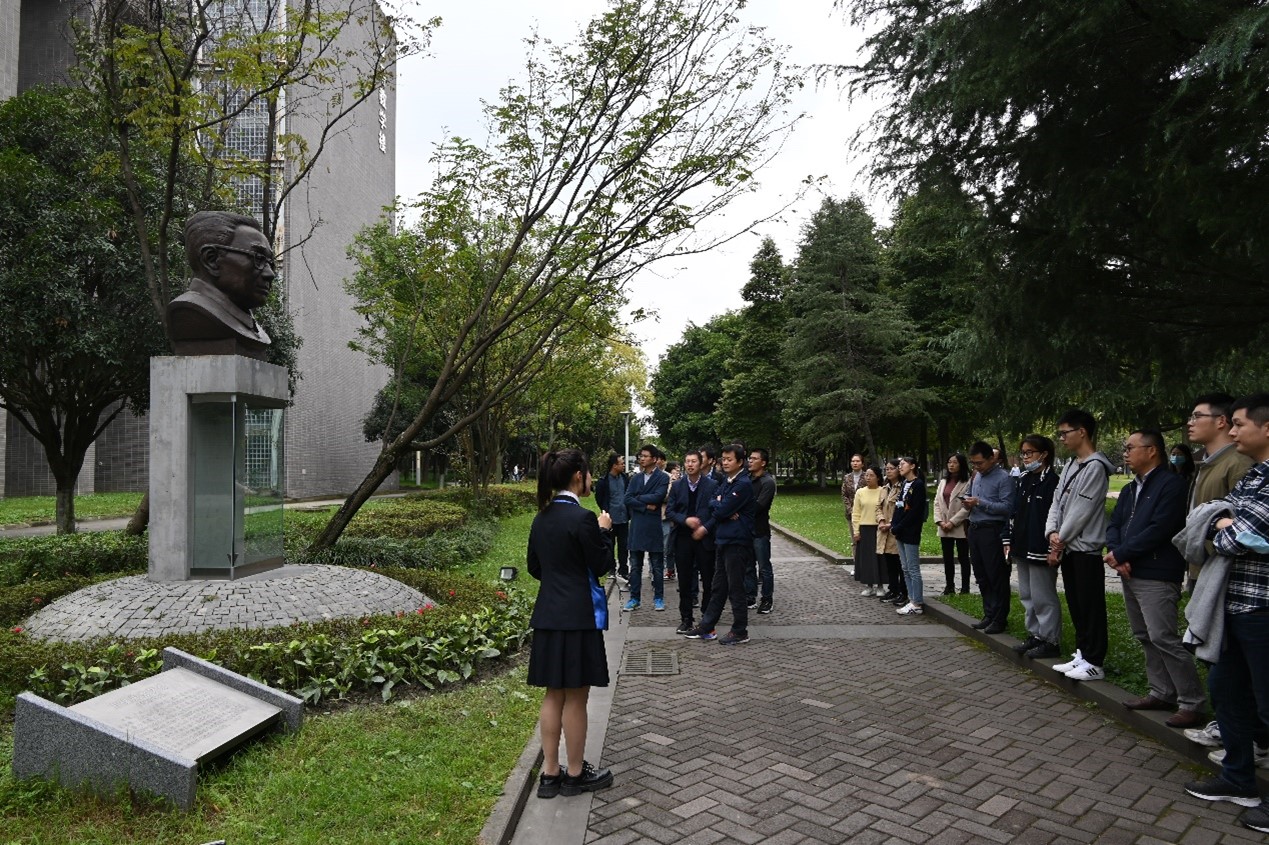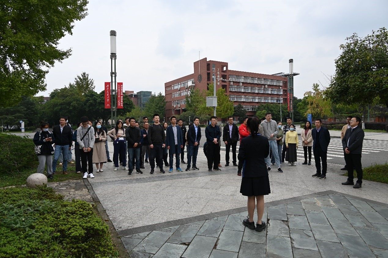 座谈会正式开始前,参会人员在学校南大门前集合,由西南交通大学校园大使团成员张禹淇带领老师们走中轴线,重温学校126年办学历程,领略大师风采。从南大门到“竢实扬华”墙再到四号教学楼,从标志性建筑到杰出人物塑像,从学校历史发展到精神内核培育,讲述了 “竢实扬华,自强不息”的交大精神、“精勤求学,敦笃励志,果毅力行,忠恕任事”的交大校训、“严谨治学,严格要求”的优秀传统,展现出学校教师风清气正、一心为国的高尚品质,对在场青年教师产生积极深远的教育意义。