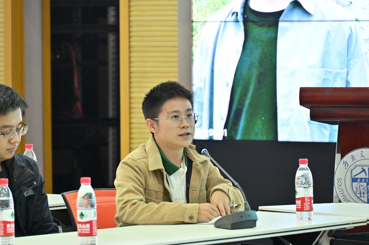 地质工程系石宇博士从科研方向、科研角色转变入手,结合自己的入职经历和教学经历,表达了对学院的支持与感谢。他表示,自己会结合自身研究方向与学校特色,利用所学致力于川藏线等沿线地热资源研究,也将进一步加强与科研团队的精密交流,获取更多学术资源,并继续注重教学与科研联系,通过建立地热实习基地,培养学生兴趣,提升学生能力。