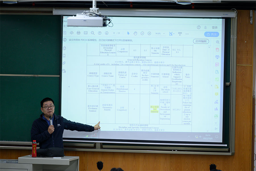 为了加深新生对测绘学科专业的认知,帮助学生更好地了解学习内容及本专业培养方案,地学学院于10月8日19:00-20:00在X4352教室举办了本科2022级测绘类新生专业教育。测绘遥感信息系系主任曹云刚老师、副系主任张同刚老师,新生辅导员陈荩娜老师,2022级测绘类全体新生参加此次活动。本次活动由曹云刚老师主持。