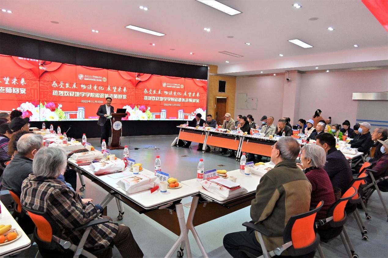 的发展能呈现良好态势,取得优秀成果,离不开在座退休教师的坚实付出,并隆重介绍了参与此次活动的离退休老师们,再次欢迎他们“回家”,欢迎他们“常回家看看”。