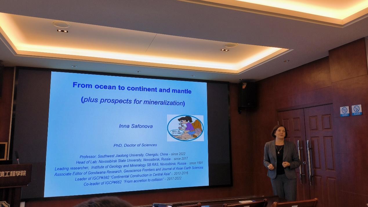 报告伊始,主持人赵晓彦教授对Inna教授克服重重困难、全职加盟交大表示热烈欢迎,并介绍了Inna教授的主要科研经历和学术成就。Inna教授围绕近年来其研究团队在中亚造山带(CAOB)、洋板块地层学(OPS)、洋岛玄武岩(OIB)、大火成岩省(LIP)等方面的新认识和大地构造学的前沿基础科学问题进行了近2小时的学术报告,并展望了未来的科研和教学计划。