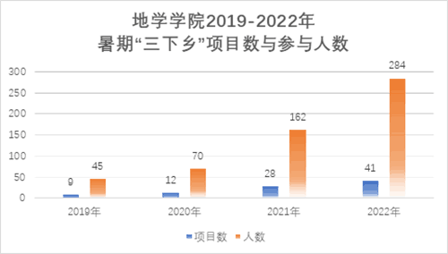 2019-2022年暑期“三下乡”项目数与参与人数统计柱状图