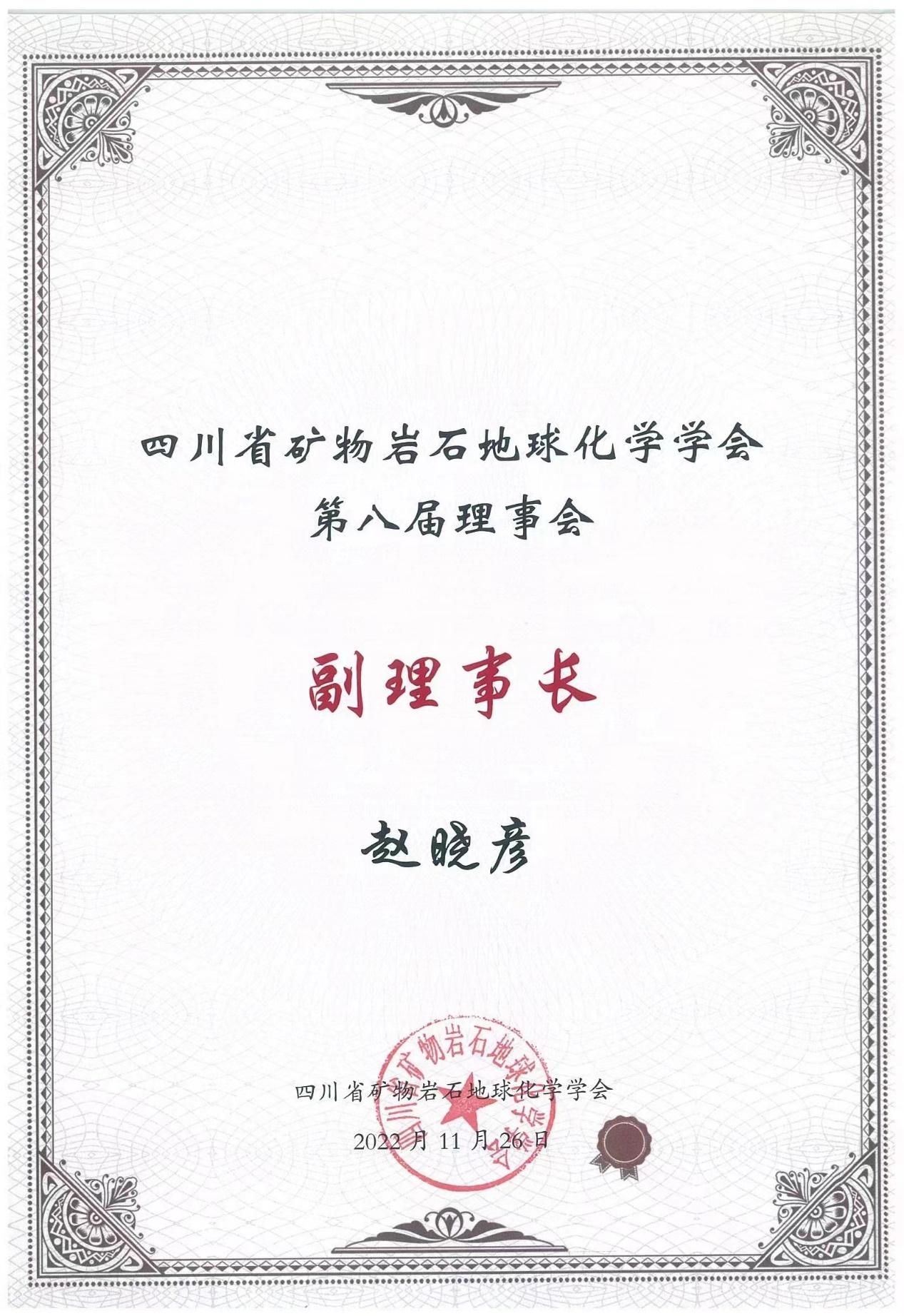 赵晓彦、张云辉、裴秋明三位老师入选四川省矿物岩石地球化学学会第八届理事会名单,赵晓彦教授当选为副理事长。
