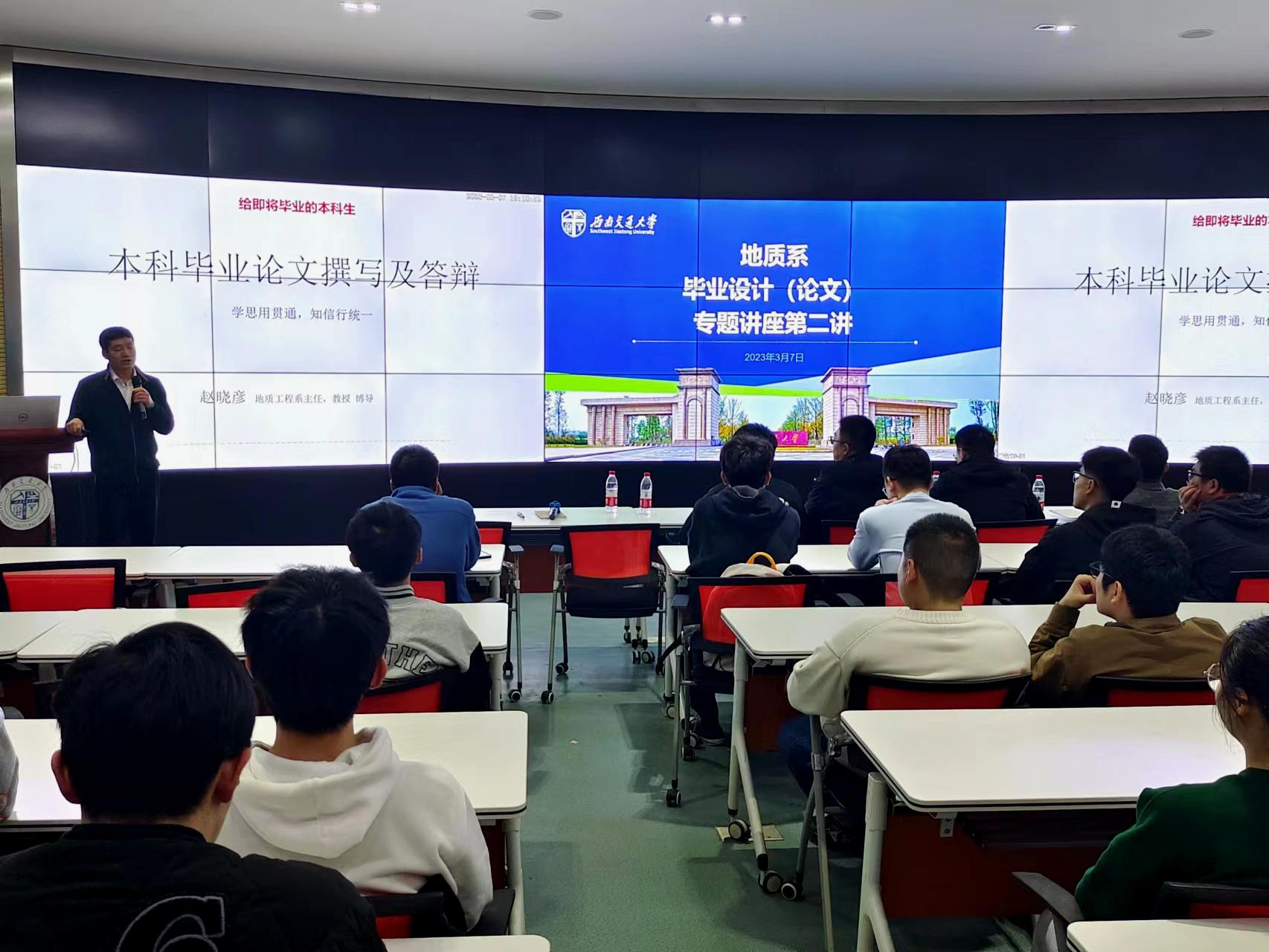 为提高本科毕业设计(论文)质量,2023年3月7日晚,地质工程系主任赵晓彦教授在X4243作了题为“本科毕业论文撰写及答辩”的专题讲座,讲座由张志厚老师主持,罗刚、甘保平、张健、瞿立明、廖康等多位青年教师共同参与。