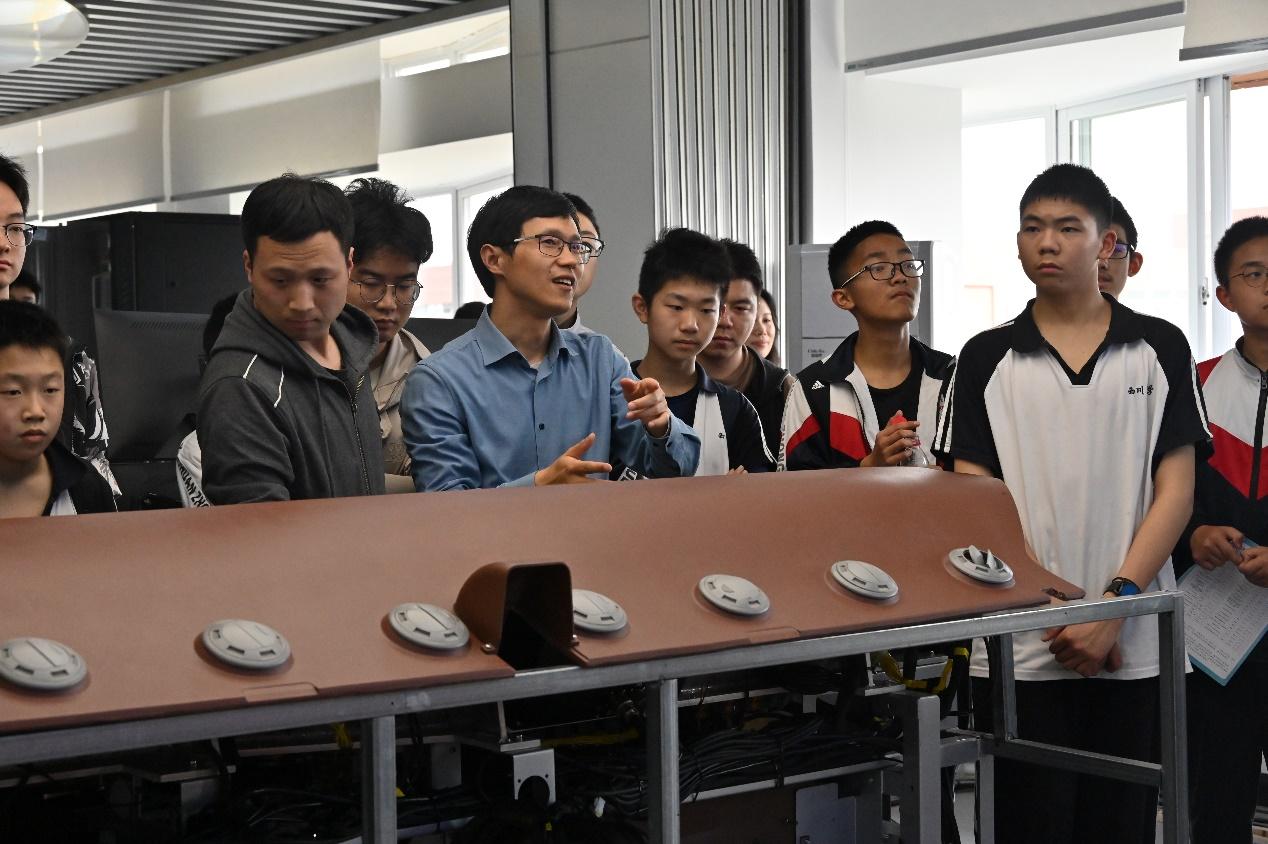 在先进能源牵引与综合节能铁路行业重点实验室,王青元老师带领着学生们参观了实验室。同学们近距离接触和了解了列车运行与牵引方面的先进技术,并在指导下亲自尝试了数字化的仿真模拟。