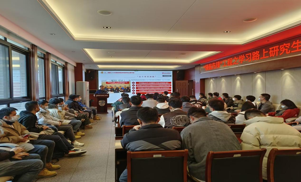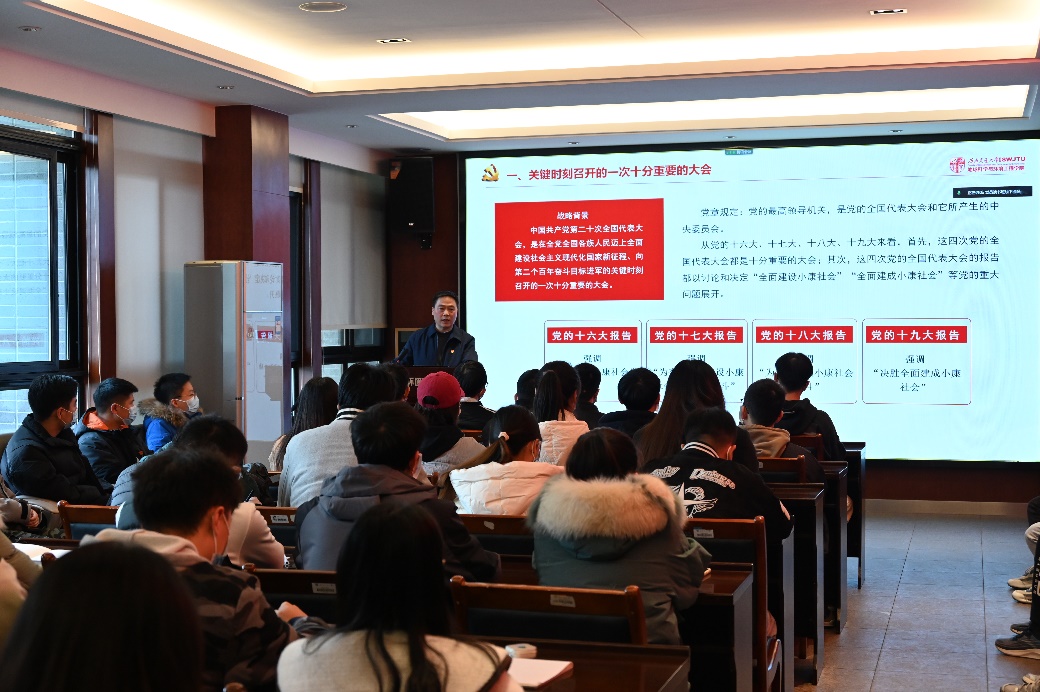 同时关书记也通过分析历届党代会关键词变化来进一步领悟国家的前进方向,回顾了伟大建党精神形成的历史背景,从不同维度解读了伟大建党精神的科学内涵,呼吁为实现党的二十大伟大目标,全体党员要牢记“五个必由之路”,牢牢把握团结奋斗的时代要求。针对如何学好二十大,关书记告诫大家一定要掌握好“五个牢牢把握”的逻辑框架,这是贯彻落实党的二十大精神的重要思想引领和行动指南。当谈到学习二十大应有的状态时,关书记劝勉同学们要不断克服“理论学习的过程较为枯燥”的错误思想,坚持把理论作为指导现实的风向标,用党的先进理论助力个人成长成才,沉潜深耕才能有所作为。