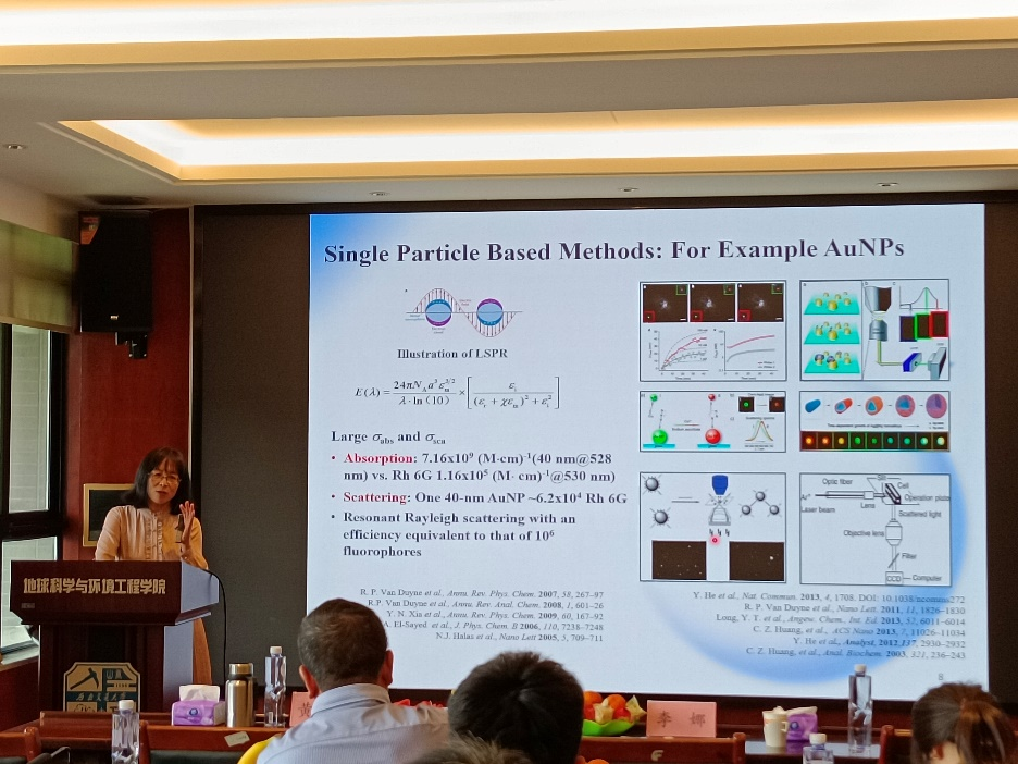在本次讲座中,黄承志教授以“从溶液系统到单颗粒的共振光散射光谱分析”为汇报主题,围绕如何发现及利用光散射信号的问题,介绍了共振光散射光谱分析方法的发展历程,以自身的研究动机出发,讲解了光散射理论基础、溶液共振光散射光谱分析法、局域等离激元共振光谱分析法、单颗粒共振光散射光谱分析法特点及其应用、人工智能技术结合光谱分析的方法;最后,对光散射光谱分析面临的挑战及机遇进行了讲述。