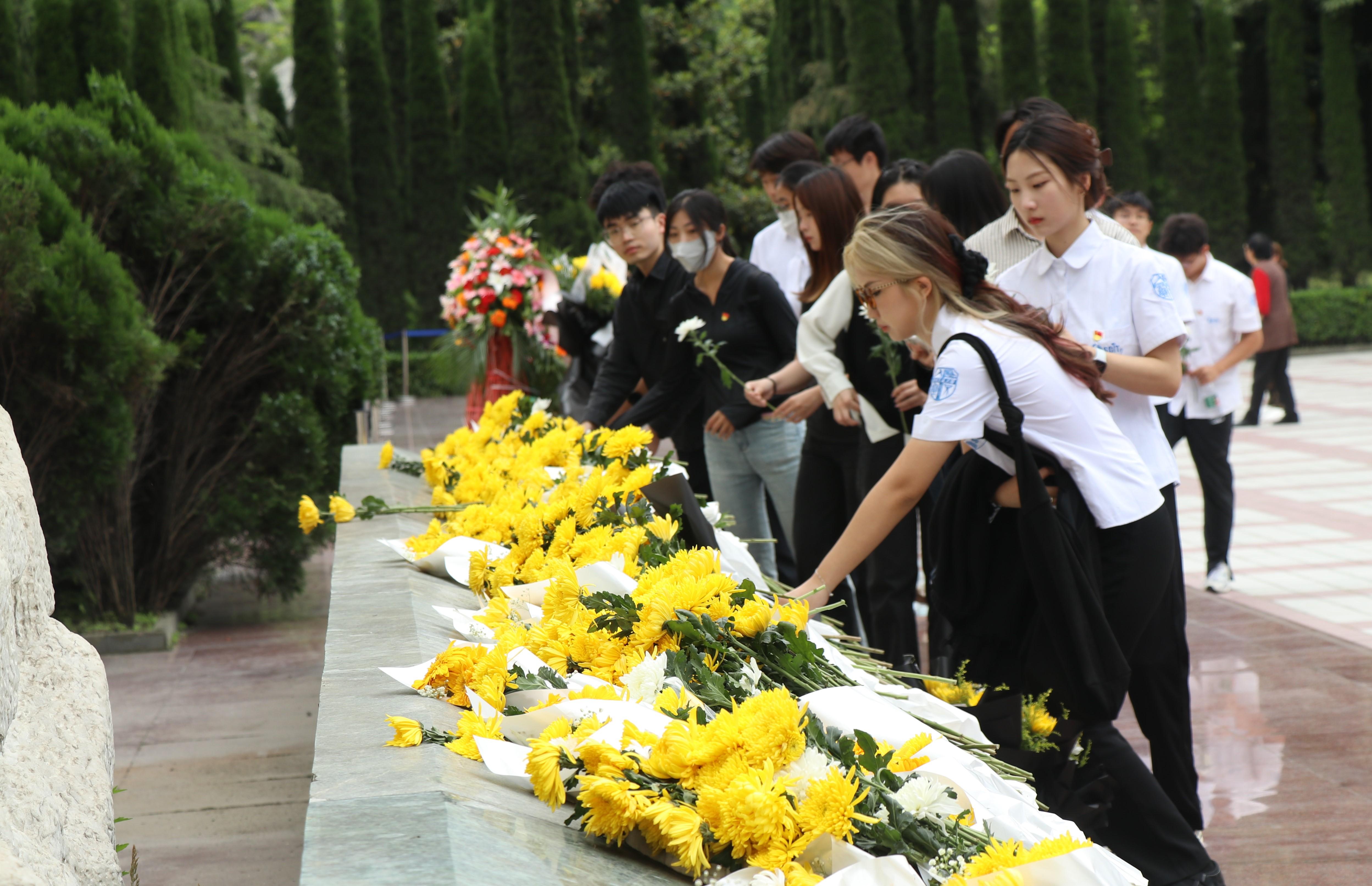 全体师生来到遗址钟表前,垂首哀思,告慰遇难同胞,默哀完毕后,大家迈着沉重的步伐,有序地向遇难同胞献花,致以沉痛哀悼。
