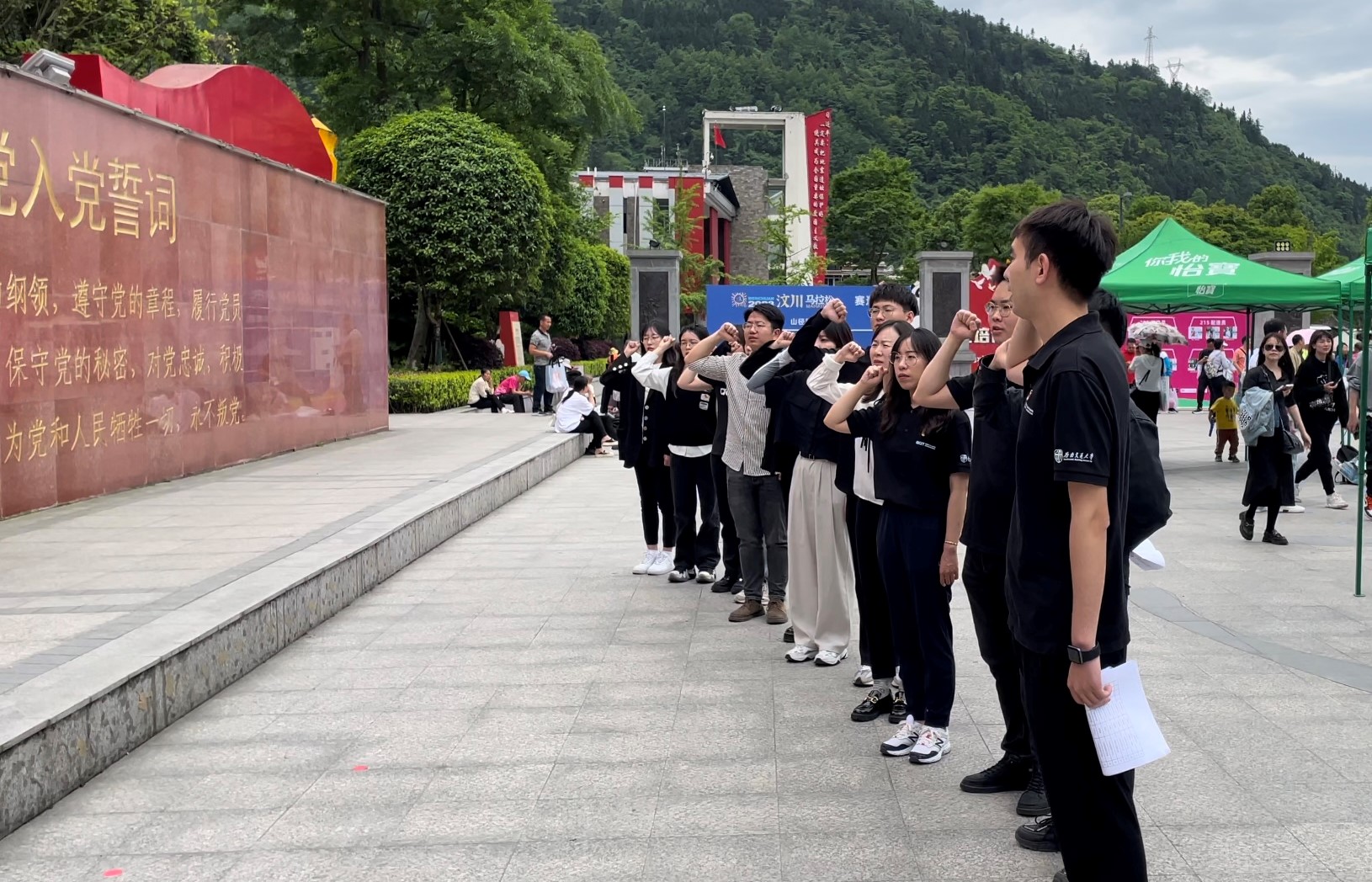 带着对生命的敬畏和对国难的痛惜,全体教师党员在家国情怀宣誓广场重温入党誓词,誓词铿锵有力、振奋人心,伟大抗震救灾精神绽放的强大精神动力,激励着大家在经受各种考验挑战时不断夺取新的胜利。