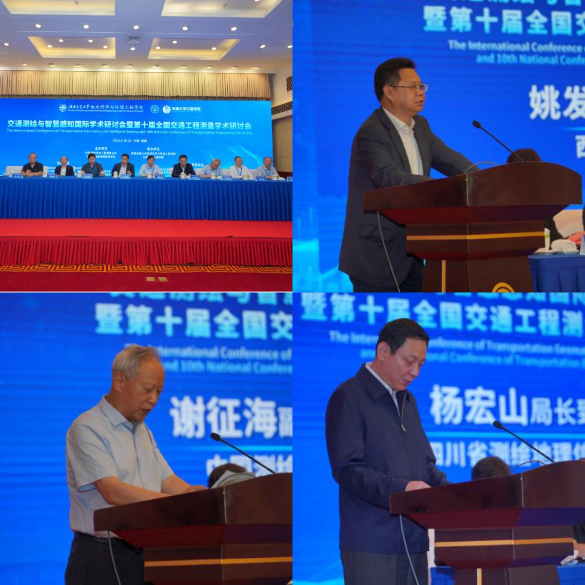 会议开幕式由西南交通大学地球科学与环境工程学院院长刘国祥教授主持,西南交通大学姚发明副校长、中国测绘学会工程测量分会副主任委员兼秘书长、重庆市勘测院谢征海副院长,四川省测绘地理信息局杨宏山局长先后发表了致词。他们一致希望此次会议能为交通智能化测绘与智慧感知理论创新与技术发展献计献策,为推动交通强国战略实施、交通测绘高质量发展贡献智慧。