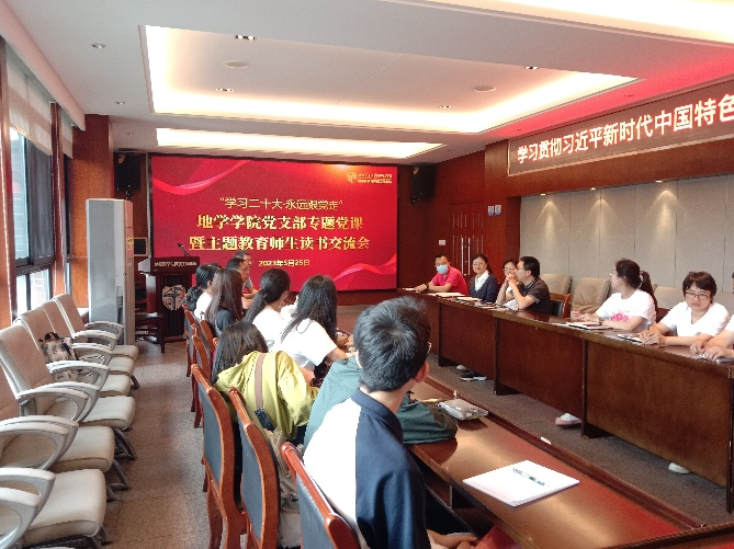 为深入开展学习贯彻习近平新时代中国特色社会主义思想主题教育,领会中国共产党第二十次全国代表大会精神,用党的新思想武装头脑,指导行动,提升师生党员的党性修养,本科消防党支部联合教工消防党支部和教工行政党支部于5月25日15:00在X4520会议室开展了“学习二十大·永远跟党走”专题党课暨主题教育读书交流会活动。党委委员张玉春为师生党支部讲授主题教育专题党课。