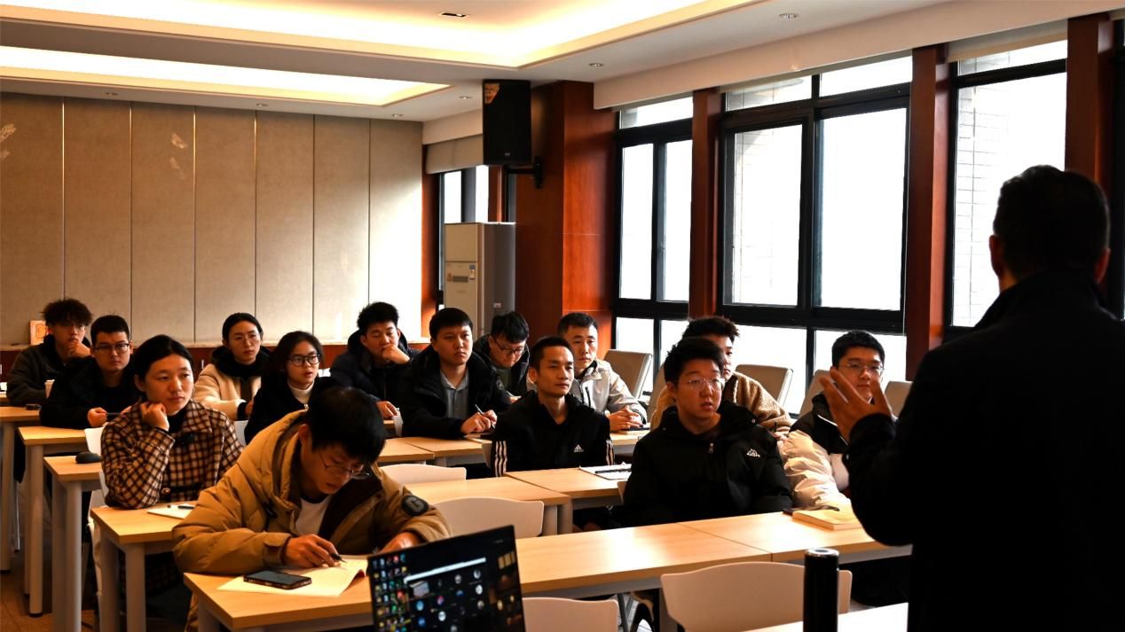 随后,刘院长从四个方面对博士们予以指导。一是关于学生对未来、对专业产生困惑的问题,刘院长结合自身在香港求学的经历,要求同学们一定要多读书,读好书,跨专业、跨领域的读书。他表示,博士是打基础的重要时期,一定要在此期间广泛阅读专业领域的书籍、吸收广博的知识,并指出读书贵在坚持。同时,刘院长强调了交流与拓展,“一个项目不能仅仅只局限于自己所知道的领域”,作为博士生,要广泛地阅读,广泛地交流,跨专业跨领域地拓展视野,从而构建知识的系统性、广泛性与完整性,努力成长为综合性人才。此外,了解到博士生学习研究过程中会面临的焦虑,刘院长教育大家在博士学位的攻读中不能太着眼于与他人对比,而应聚焦自身的进步,即是否挑战了自我、超越了自我、完善了自我。博士生应该做到自立自强,学会自省,从而提高并重塑自我,对社会有所贡献。在日常运动方面,刘院长列举了多个实际问题进而要求大家在运动方面进行系统性的研究规划,从而拥有更好的体力、活力与自控力。人应该从运动学的角度研究剖析自我,研究”怎么运动?”、“有氧与无氧运动该如何结合?”……一个个生动的实例推动会场气氛走向高昂,同学们都认真思考,收获满满。