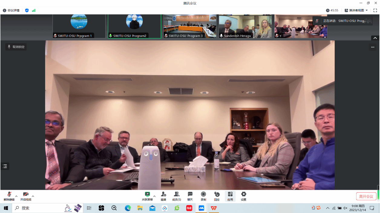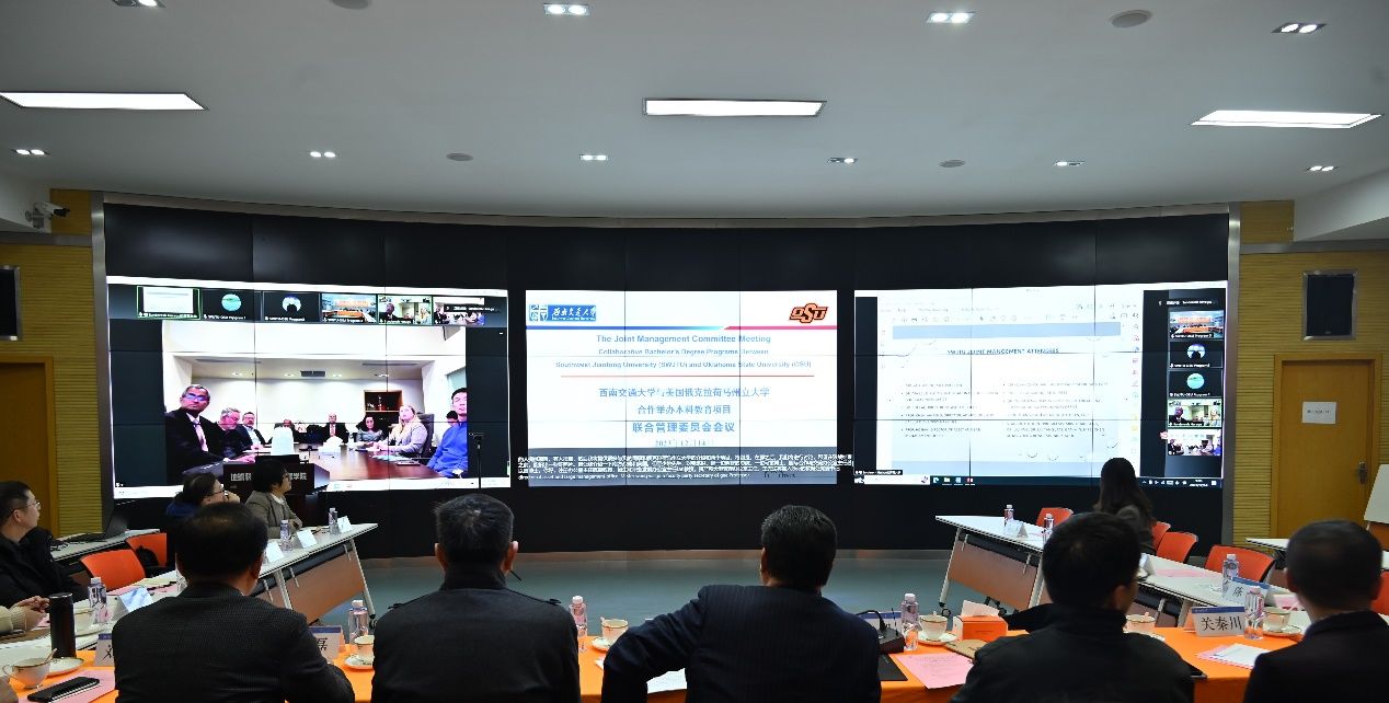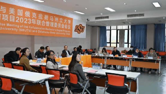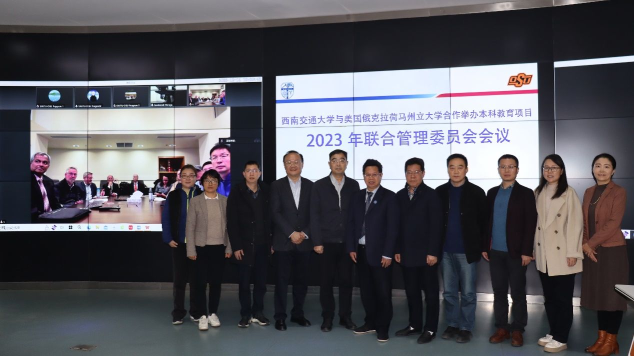 12月14日上午9点,西南交通大学与美国俄克拉荷马州立大学合作举办本科教育项目2023年联合管理委员会会议在X4243隆重举行。西南交通大学副校长姚发明、俄克拉荷马州立大学副教务长兼全球研究与合作学院院长Randy Kluver出席了会议,会议由俄克拉荷马州立大学工程建筑与技术学院副院长Sunderesh Heragu主持。