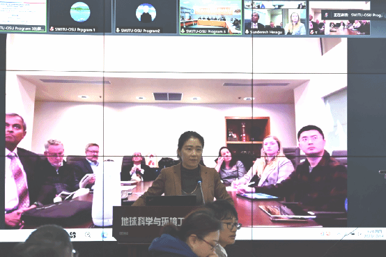 随后,地球科学与环境工程学院综合事务办公室主任(国际化)兼项目行政主管关方介绍了项目运行情况。她从项目概况、人才培养、培养成效、学生活动等方面介绍了项目近况,并表示未来项目将进一步布局规划并持续发力以期达到更高的水平和目标。