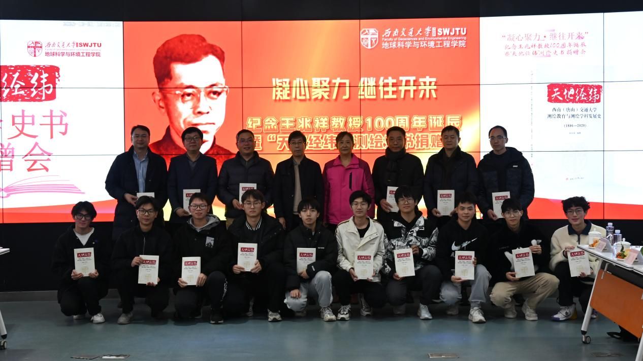 的工程学科起步时间早,发展势头好。他自豪地表示,上世纪三十年代初包括清华大学在内的众多学校“都是把唐山交大作为办工程学科的一个模板”。鉴于此,编写相关学科的历史就显得尤为重要,然而编纂一个学科的发展历史十分困难。他从大量的史料中去寻找测绘学教育的起始点,深入探求学校开展测绘教育的原因,仔细分析测绘专业的发展历史,经过多年的努力,最终完成了《天地经纬》一书。《天地经纬》这本书籍非常完整记录了西南交大测绘学科在过去100多年里的发展和成长过程,非常有保存价值。在此阶段,特举行了《天地经纬》测绘史书的捐赠活动,由顾利亚教授、李志林教授为每位在场嘉宾赠送 “天地经纬”书籍。