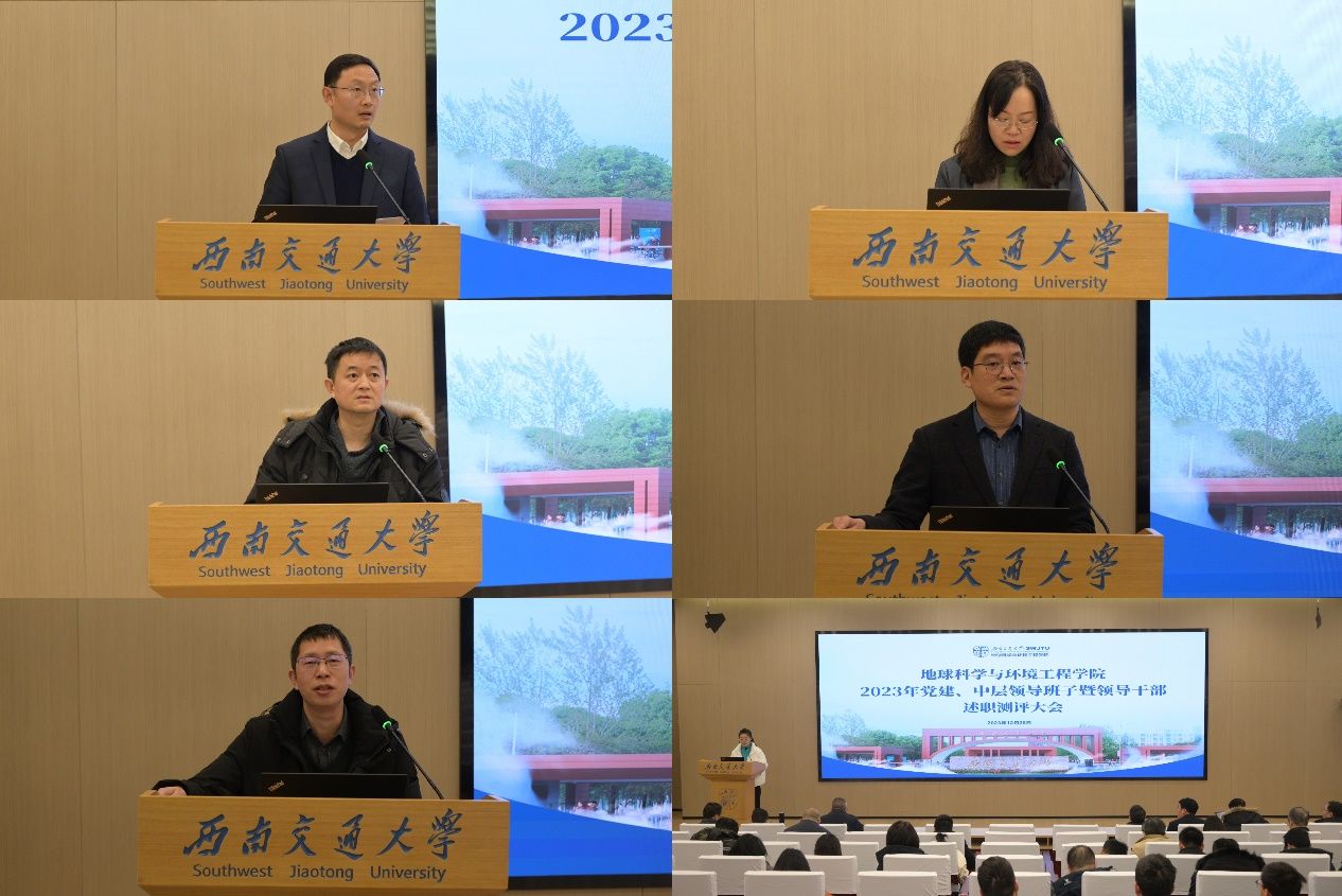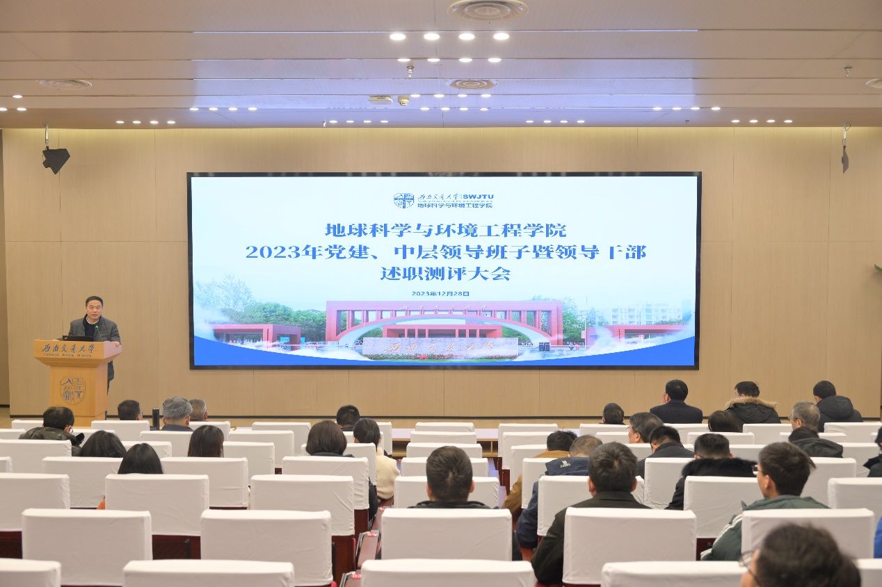 接着,关秦川代表学院党委进行题为“学思践悟促发展 砥砺奋进新征程”的工作述职。他以“一条主线”“两大基础”“三项突破”“四大深化”对2023年学院党建工作进行回顾总结。他强调,2023年是全面贯彻落实党的二十大精神的开局之年,是落实学校第十五次党代会精神的启航之年,也是学院新一轮发展的奋进之年,学院党委始终把牢主题教育这一主线,夯实组织建设机制,完善两大基础,固本强基、凝聚力量,实现党建工作与学院中心工作同频共振,深度融合,推动学院高质量发展。下一步,学院党委将结合存在的主要问题,明确工作思路,发挥党建第一负责人作用,提高党建科学化水平,以高质量党建引领学院高质量发展,促进学院党建与事业发展深度融合。最后,他以“欢天喜地,脚踏实地,顶天立地;精勤求学,真才实学,鸿儒硕学”与全体地学人共勉。