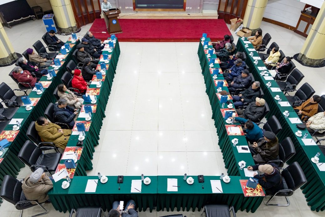 在九里校区镜湖宾馆院士厅举行离退休教师新年座谈会,学院邀请全体退休教师共话学院发展,同庆新春佳节。学院党委书记关秦川,院长刘国祥,学院工会主席、副主席,系主任、综合办主任、系秘书等30余人出席了本次座谈会,会议由工会主席蔡红波主持。