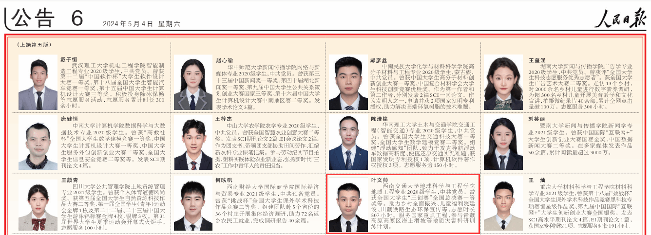 地质工程2020级学生叶文帅作为学校唯一代表入选。