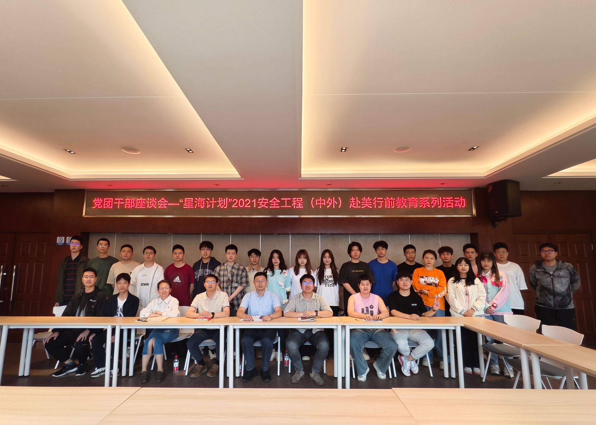 最后,同学们就关心的问题与老师们进行了交流。至此,“星海计划”2021级安全工程(中外)赴美行前教育系列活动—党团干部座谈会圆满落幕。