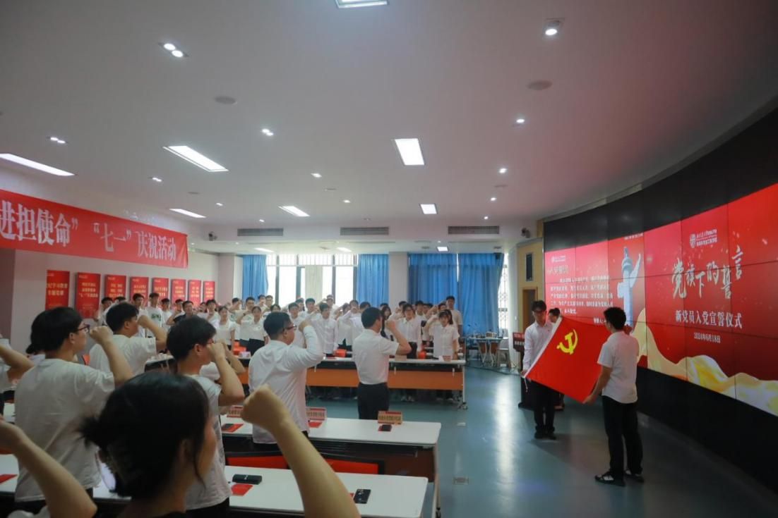 随后,大会举行“党旗下的誓言”——新党员入党宣誓和老党员重温入党誓词仪式,党委书记关秦川同志领誓,其余党员同志右手握拳,跟读宣誓。铿锵的语调,充满着志气与决心。
