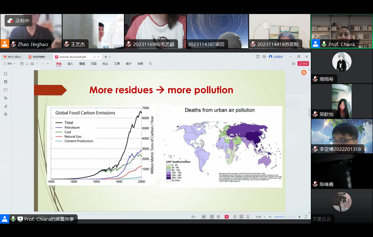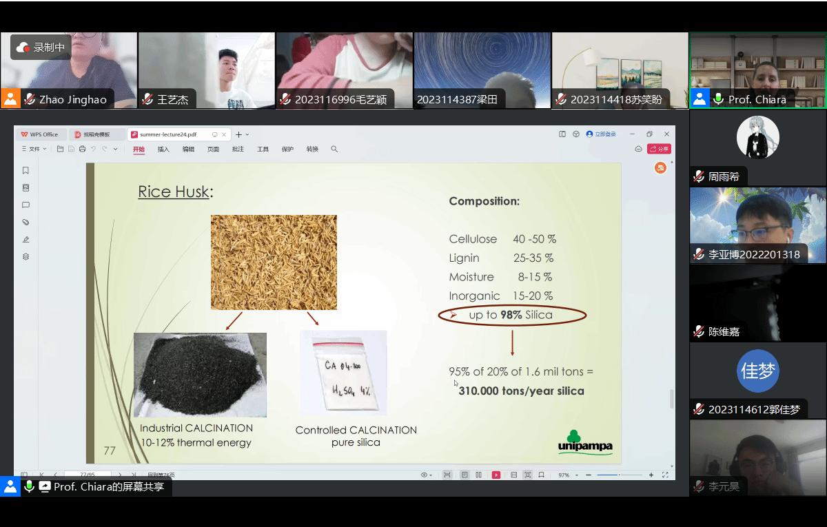 Chiara老师在课程中介绍了多种可持续材料的概念和制造过程,展示了如何应用技术来帮助保护环境,并以农业废弃稻壳为例,详细阐述了其如何被用作生产日常产品的新型原材料。Chiara老师还介绍了如何探索和开发可持续材料,以及可持续发展理念对社会经济和环境的影响。