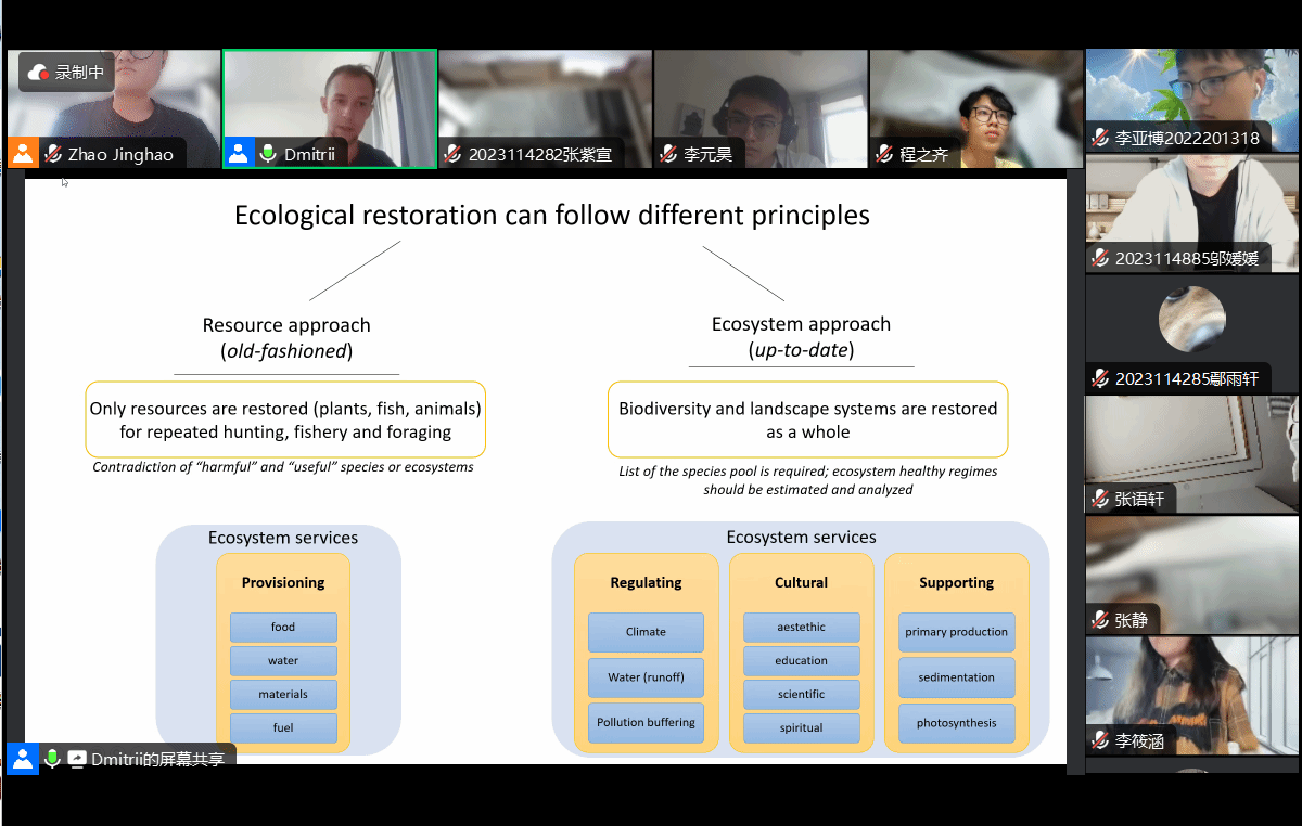 Dmitrii老师的课程围绕湿地和湖泊对人类、气候、水文、以及野生动物栖息地环境的重要性展开。课程的第一部分介绍湖泊和湿地的类型,以及湿地生态系统的功能和作用。第二部分主要讲解湿地的演变过程,包括自然演变和人为影响,介绍了人类行为对湖泊和湿地的影响。最后,介绍了湿地的保护和恢复,以及维护湿地功能的基本方法和思路。