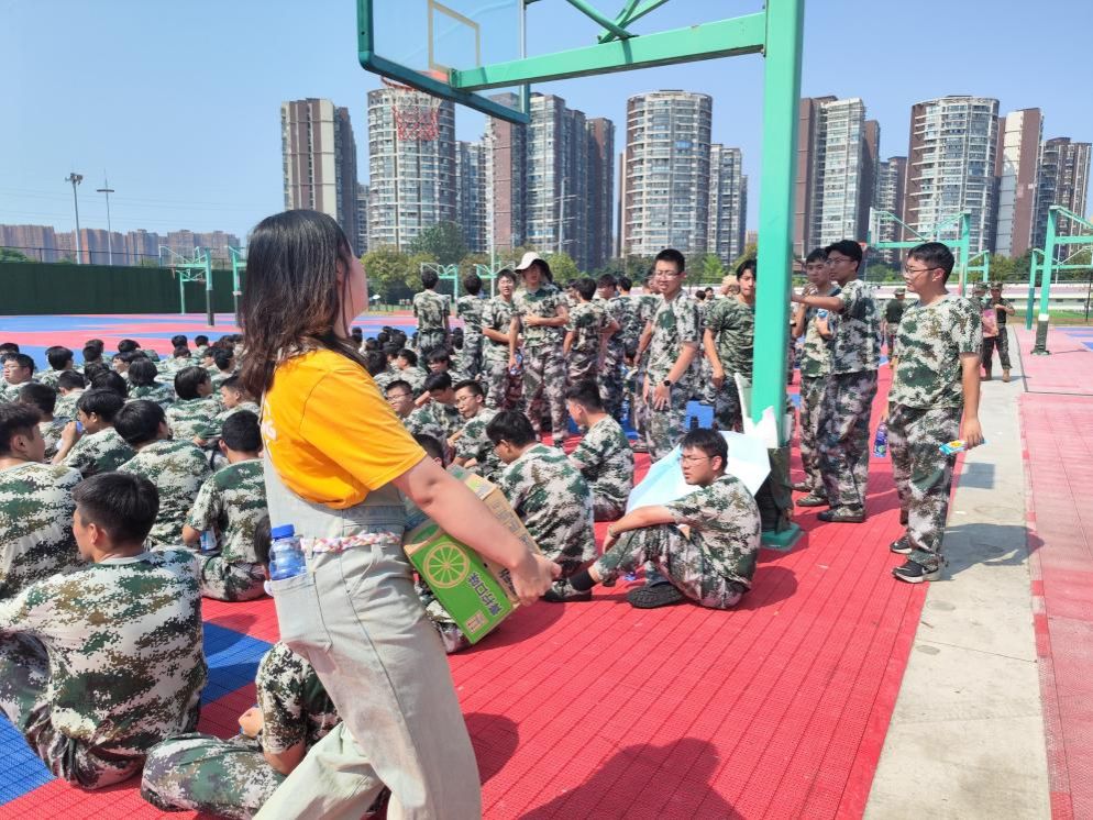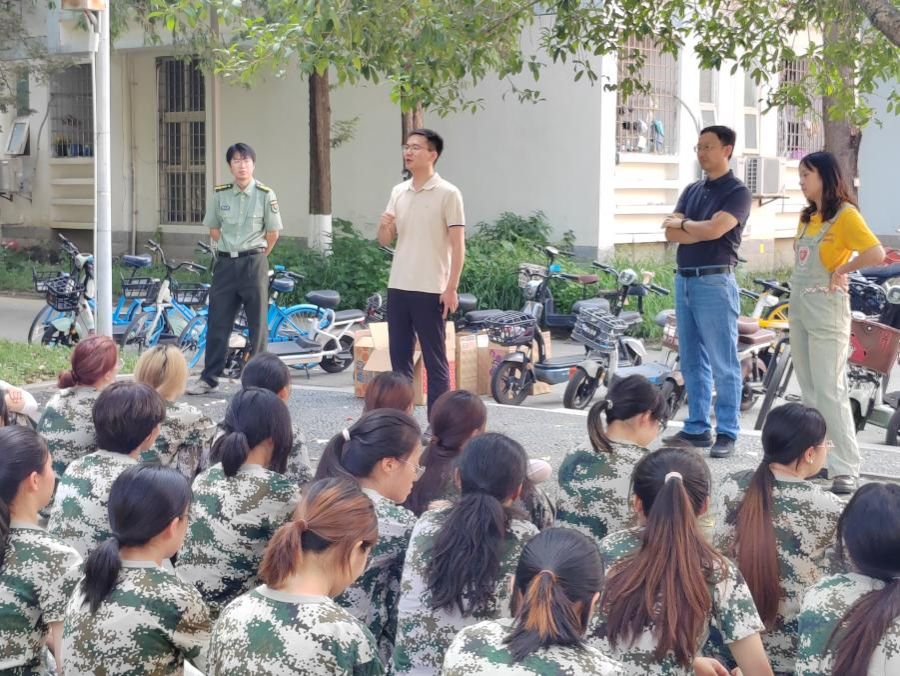 两位22级辅导员与教官和同学们行了深入交流,详细了解了同学们的训练进展和身体状况,叮嘱大家在积极训练的同时注意身体健康,防止中暑或其他意外情况的发生,组织同学们领取学院为大家准备的运动饮料和饼干。同学们在接受慰问时,也对学院领导的关心和支持深表感谢。