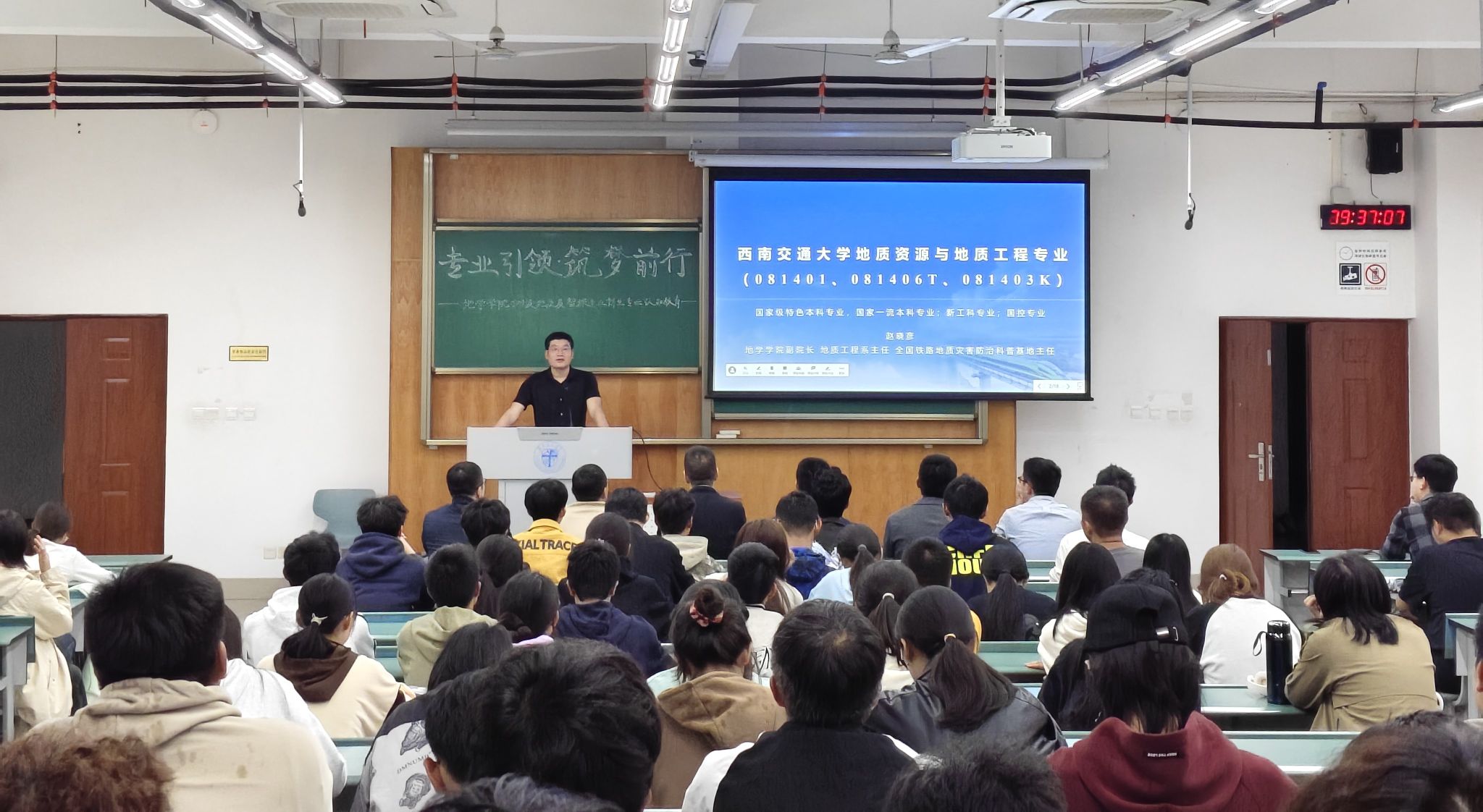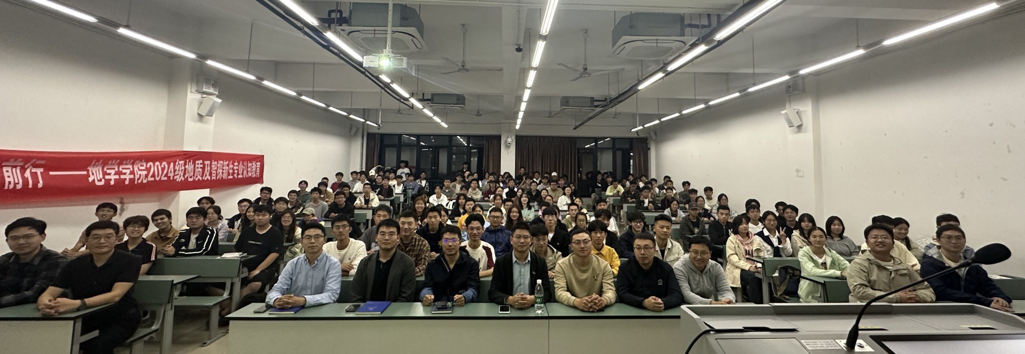 副院长、地质系系主任赵晓彦主讲,地质系副系主任张志厚、地质系青年教师、新生班导师孙清飞、石宇、芦飞凡、肖勇、何坤、廖康、吕城、孙辉、张龙飞、马宁老师以及全体地质、智探新生参加活动。