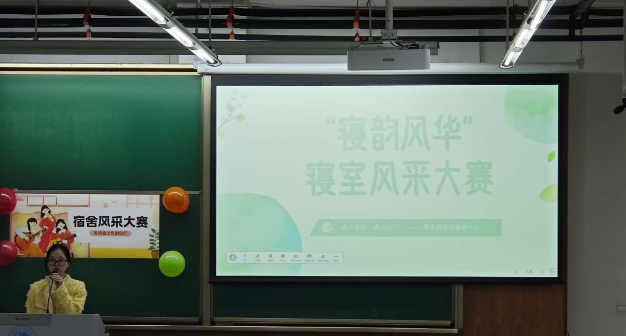 大赛伊始,姜茜老师上台致辞,她首先感谢各位评委与嘉宾光临本次比赛,而后她提到五湖四海的人们共聚在一个寝室是一种缘分,希望同学们能珍惜这种缘分,给寝室一份温馨的氛围, 彼此鼓励,共同进步。