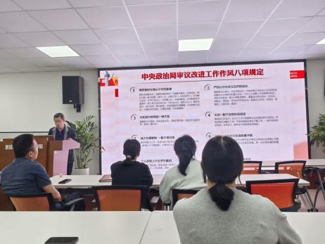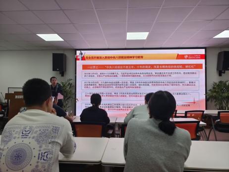 张玉春同志首先由徙木立信的故事引出本次的学习内容:在全党开展深入贯彻中央八项规定精神学习教育。随后介绍了本次学习教育的目的,要求以及开展措施。然后介绍了中央八项规定和中央八项规定精神的具体内容以及区别。违反中央八项规定精神问题共6大类14种表现,张玉春同志从前两大类为党员同志做出了详细说明,强调中央八项规定不是五年、十年的规定,而是长期有效的铁规矩、硬杠杠,要一以贯之。