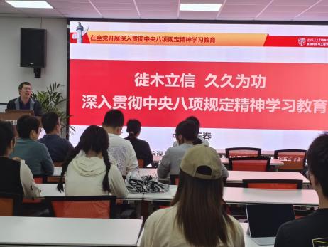 党委委员、副院长张玉春同志在馆外实验楼C204为教工消防党支部、本科安全党支部、本科消防党支部讲授“徙木立信 久久为功 深入贯彻中央八项规定精神学习教育”专题党课。