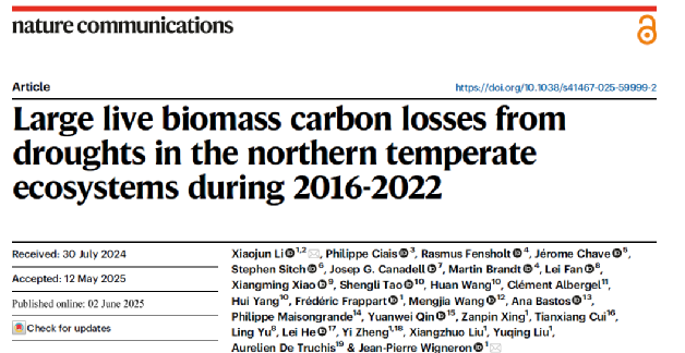 李小军教授联合国内外合作者在国际综合性学术期刊Nature Communications上发表了“Large live biomass carbon losses from droughts in the northern temperate ecosystems during 2016-2022”的研究论文。该成果聚焦于干旱、火灾等森林扰动背景下,北半球活体植被碳库的变化及其影响机制,体现了遥感科学与生态学的深度交叉融合,由西南交通大学、法国国家农业科学研究院、北京大学等19家高校与院所联合完成。