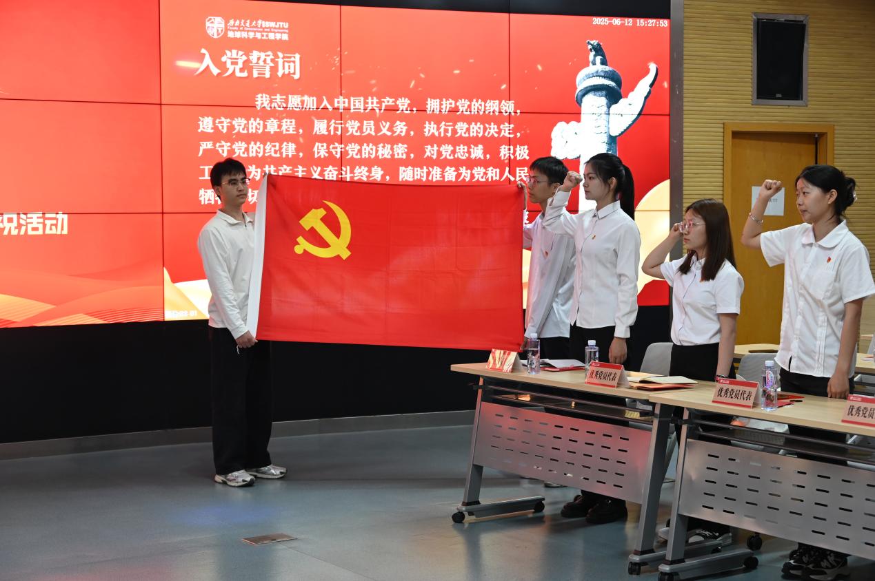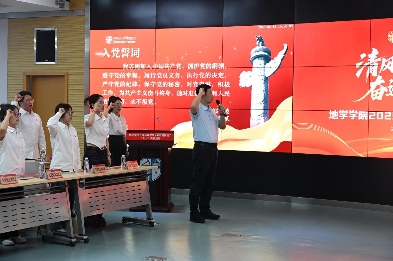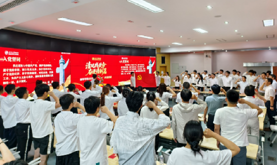 随后,在党委副书记郑波的领誓下,新党员庄严宣誓,老党员重温入党誓词,铿锵有力的誓言展现了党员们坚定的理想信念和使命担当。