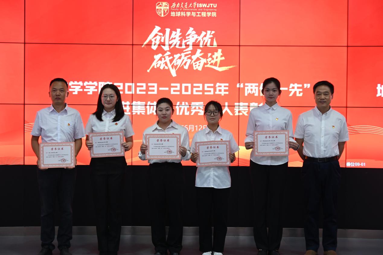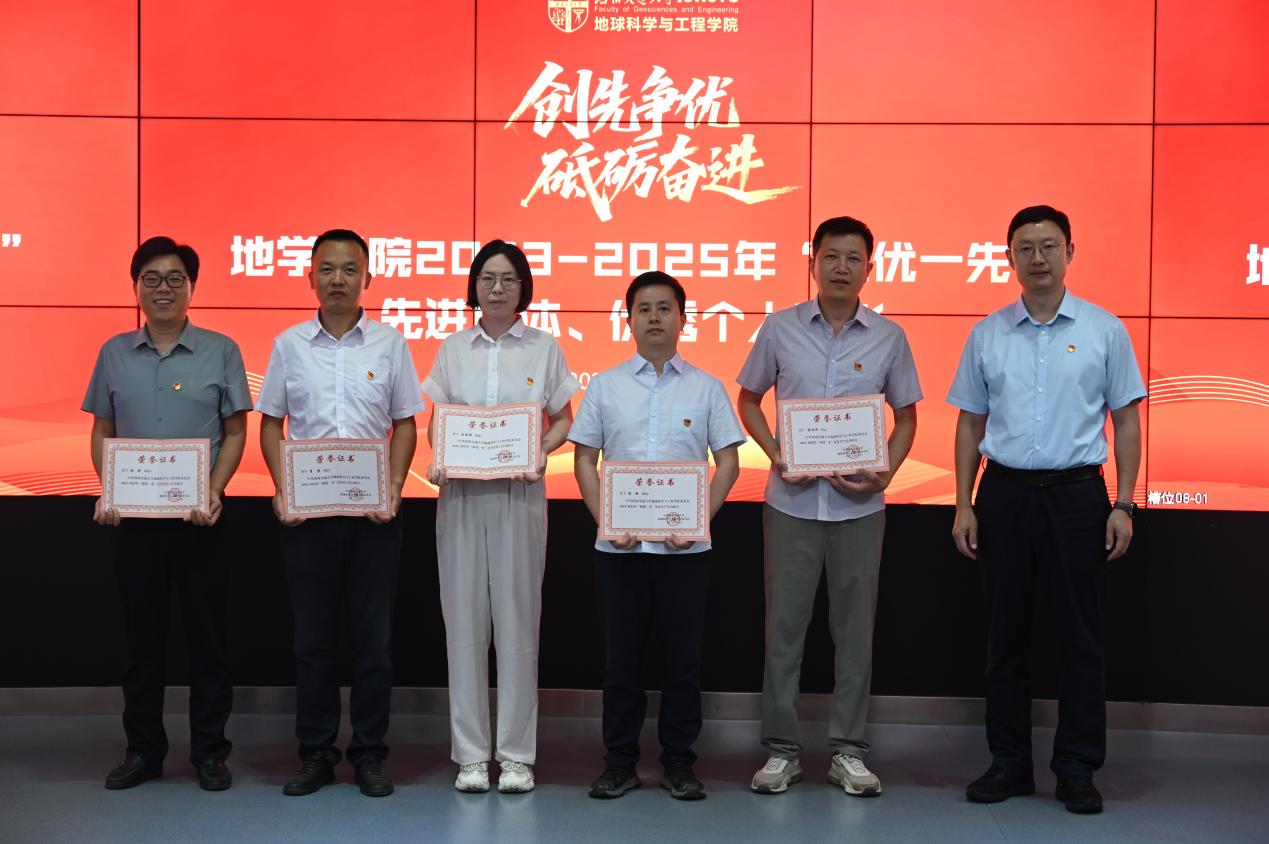 委员会关于2024-2025年“两优一先”表彰的决定》。关秦川同志、郑波同志、胡卸文同志依次为优秀共产党员、优秀党务工作者和先进党支部代表进行颁奖。