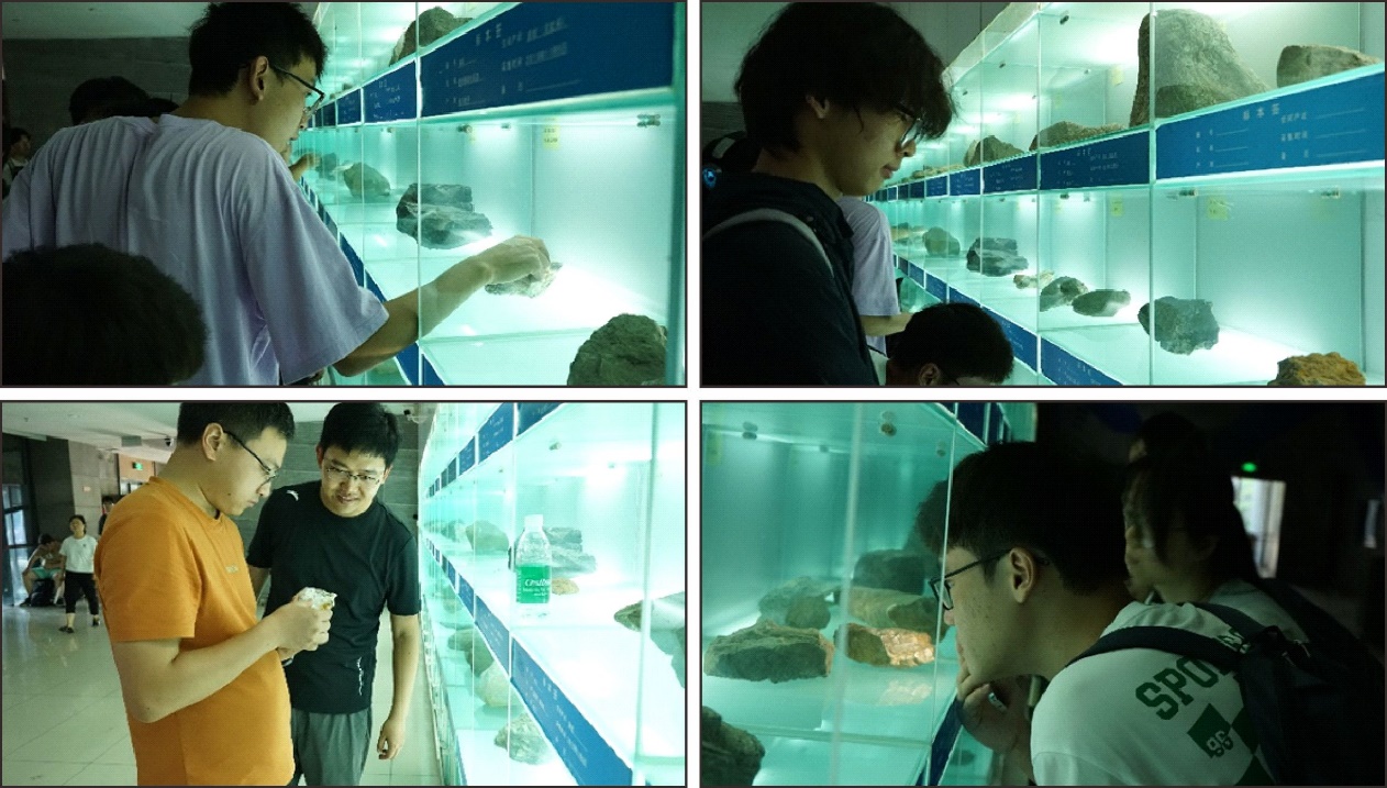 图片六 师生共同参观地震区域岩石标本