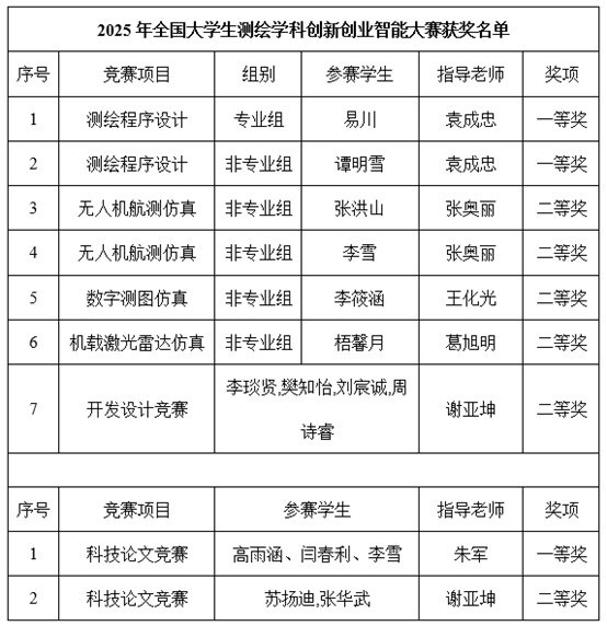 测绘学科人才培养的显著成效。