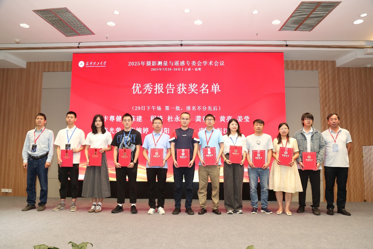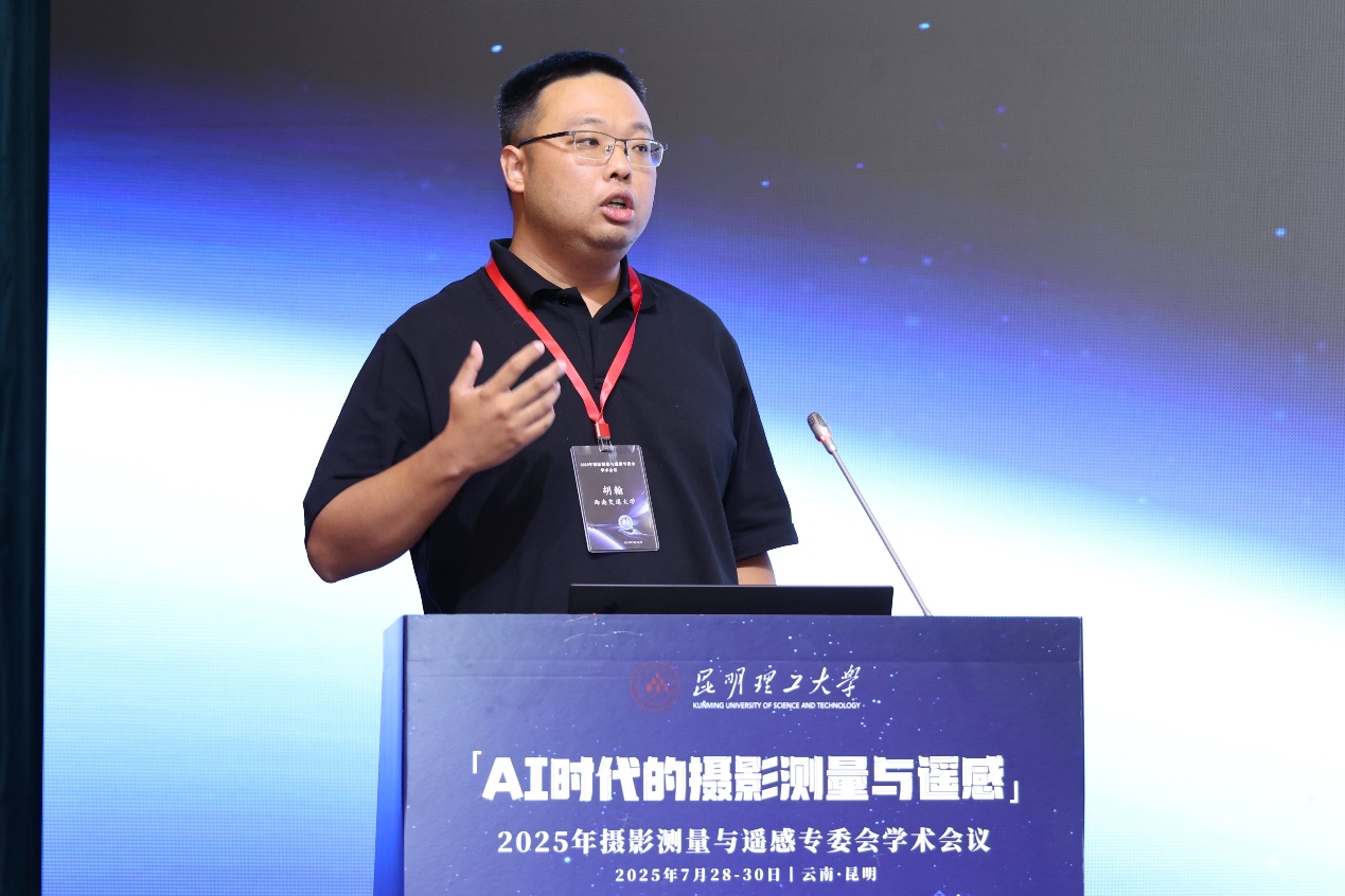 师生做了多场前沿研究成果的分会场口头报告:胡翰教授汇报了“几何图像可微渲染的真实感三维重建方法”,博士生姜莹汇报了“顾及不规则振动补偿的隧道检测系统中LiDAR-相机外参自标定方法”,并获“优秀报告奖”,博士生郭威汇报了“基于地形差异感知的高精度多视角卫星影像地表高度估计”,硕士生张晋博汇报了“用于大尺寸遥感影像语义分割的非对称Mamba-CNN协作架构”。