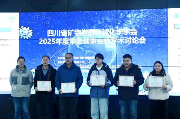 赵晓彦教授、张云辉副教授、裴秋明副教授作为理事会成员出席会议,其中赵晓彦教授担任学会副理事长。与会代表首先听取了彭惠娟副秘书长所作的《2025年度学会工作报告》。随后,李忠权秘书长公布了首届《矿物岩石》期刊优秀论文评选结果,学会副理事长西南石油大学王剑教授、监事长成都理工大学邹灏教授为获奖代表颁发了荣誉证书。最后,各分委会代表汇报了2025年度工作成果与2026年度工作计划。